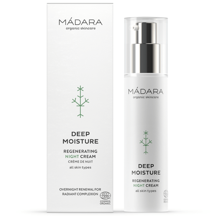 MÁDARA Deep Moisture Regenerating Night Cream 50 ml ist eine intensiv feuchtigkeitsspendende Nachtcreme, die den natürlichen Regenerationsprozess Ihrer Haut im Schlaf unterstützt. Mit einer kraftvollen Mischung aus natürlicher Hyaluronsäure und Antioxidantien aus Kochbananen und Tomaten wird die Haut jede Nacht erneuert, geschützt und mit langanhaltendem Komfort versorgt. Am Morgen fühlt sich die Haut frisch, weich und sichtbar strahlender an.