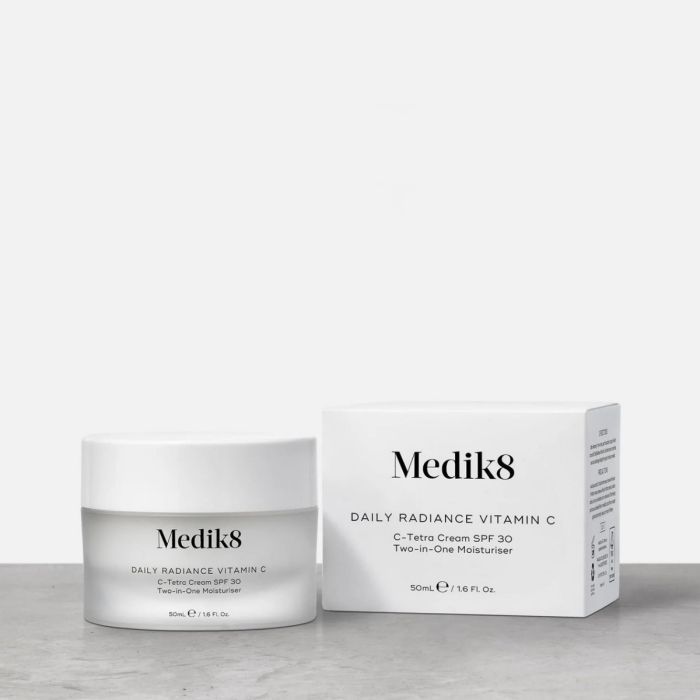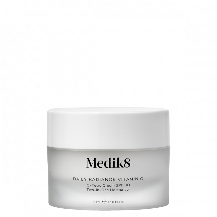 Mit Medik8 Daily Radiance Vitamin C genießen Sie täglich intensive Feuchtigkeitsversorgung, zuverlässigen Sonnenschutz und eine starke Anti-Aging-Wirkung in einem Produkt.
