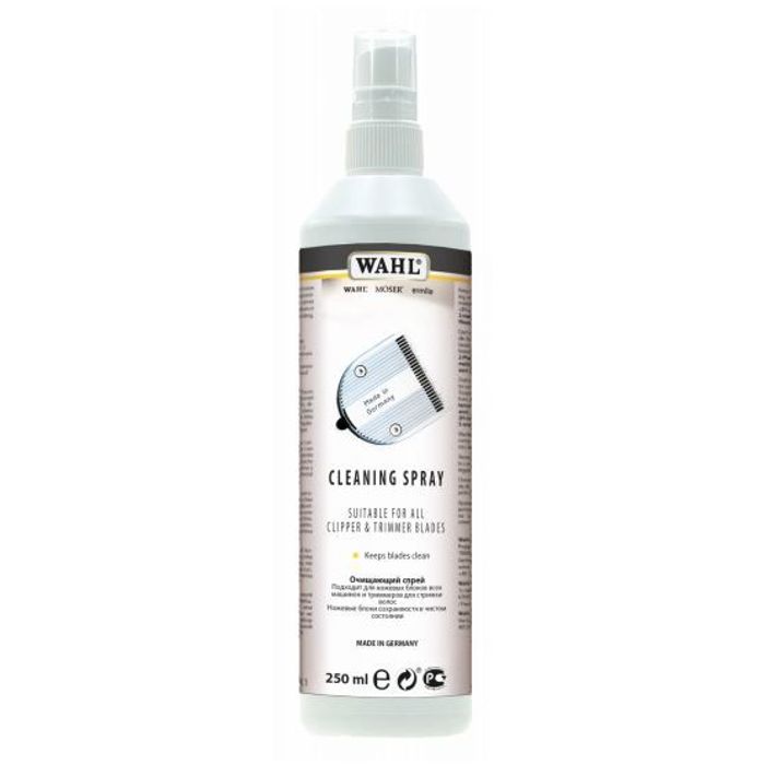 The Wahl Cleaning Spray 250ml is a powerful and effective cleaning spray specially developed for cleaning clipper and trimmer blades .