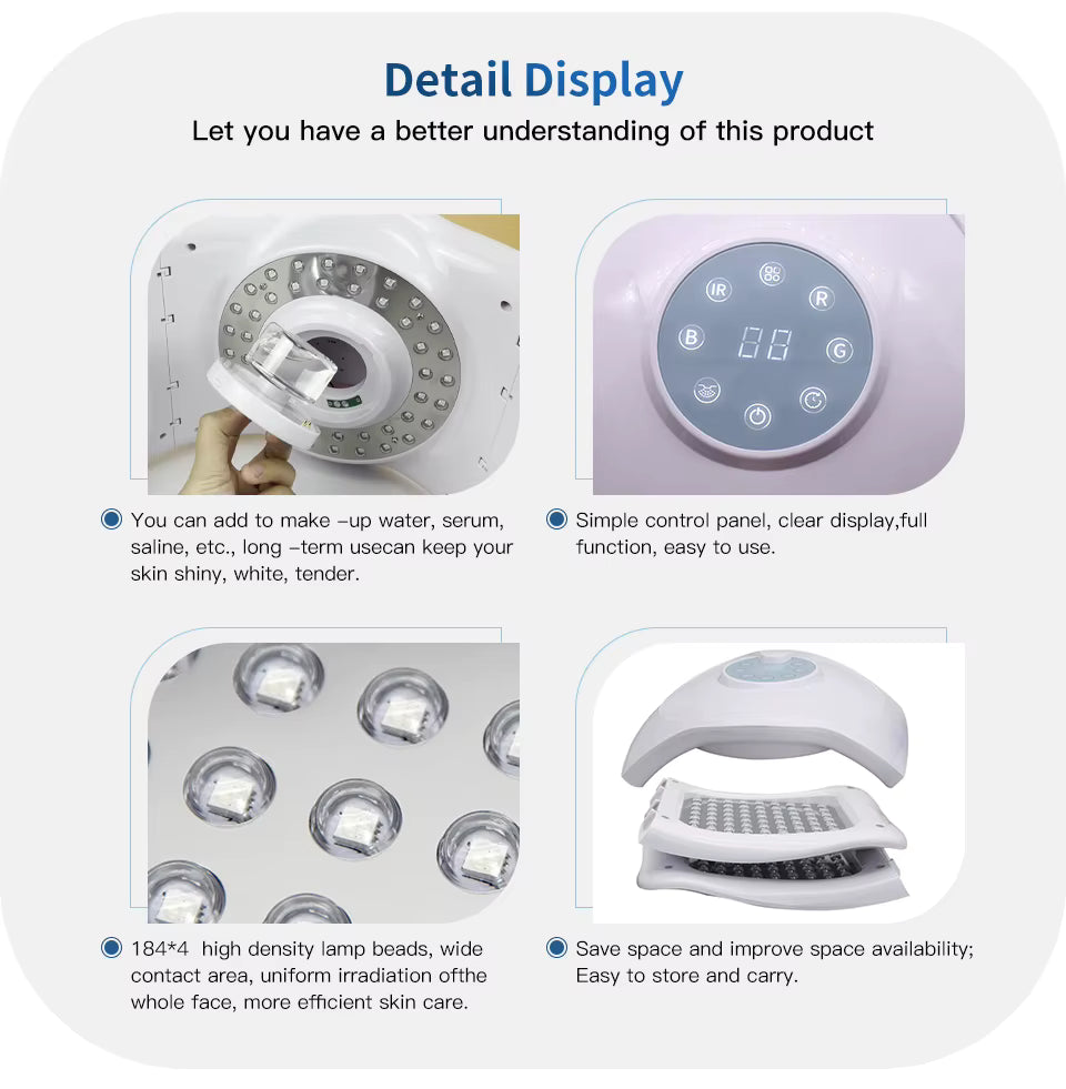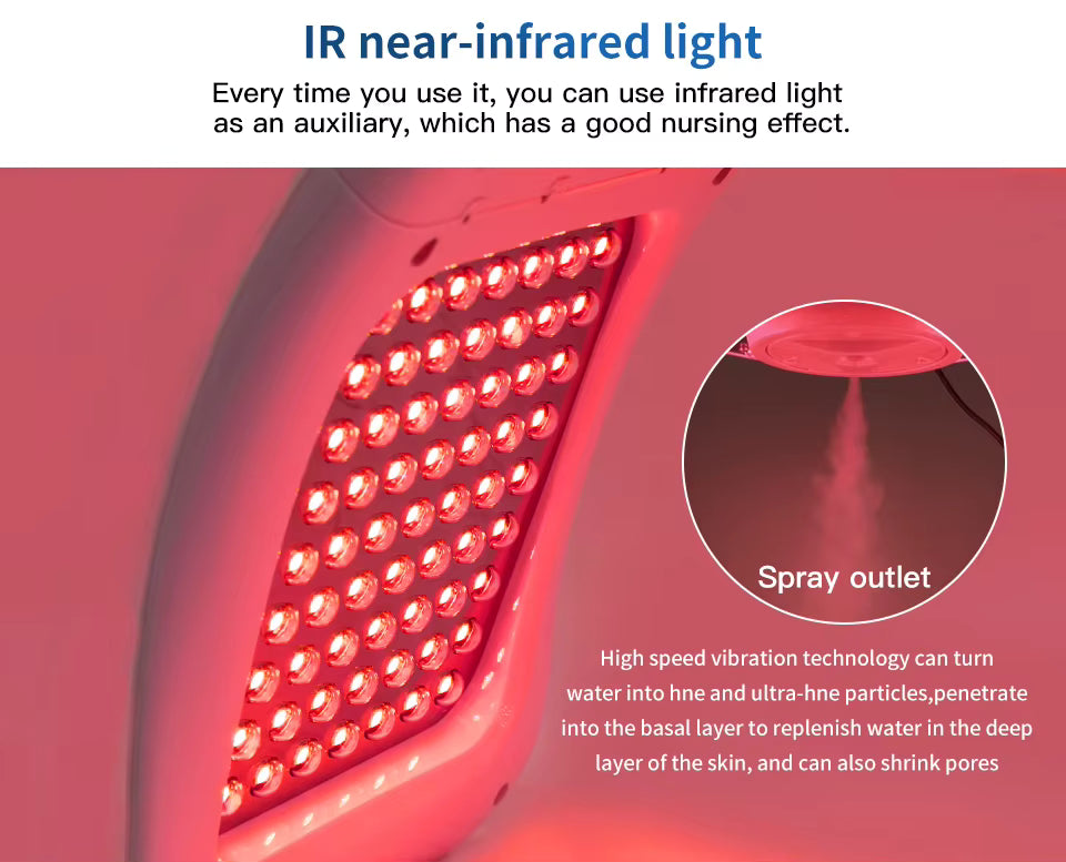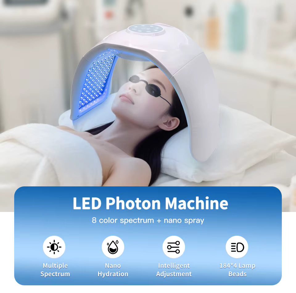 Dieses professionelle 8-Farben-LED-PDT-Maskengerät für Gesicht und Körper mit Kalt-Nano-Spray ist ein fortschrittliches Gerät zur Hautverbesserung, das sowohl im Kosmetikstudio als auch zu Hause außergewöhnliche Ergebnisse liefert. Die Kombination aus Photonentherapie (8 LED-Farben) und ultrafeinem Nano-Nebel sorgt für eine intensive Hauterneuerung, spendet intensive Feuchtigkeit und verbessert die Aufnahme von Pflegeprodukten. Dank seines ergonomischen Designs, der großen Lichtabdeckung und der Multifunktionalität eignet sich dieses Gerät ideal für Anti-Aging, Aknebehandlung, Hautregeneration, einen ebenmäßigen Teint und intensive Hautpflege.