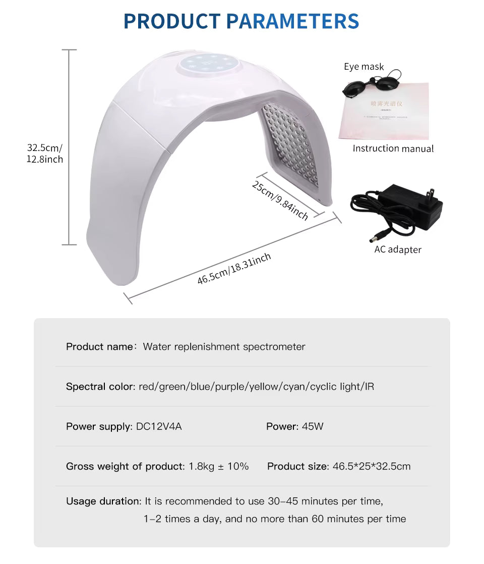 Produktname: Wasserauffrischungsspektrometer / 8-Farben-LED-PDT-Maske