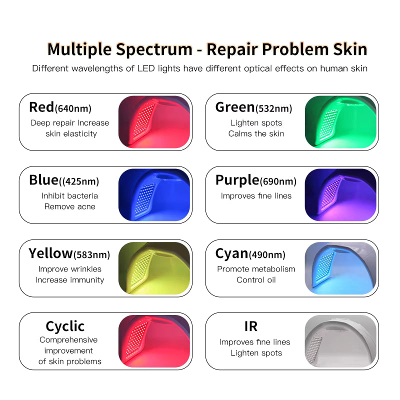 8 LED-Farben, die auf verschiedene Hautprobleme abgestimmt sind