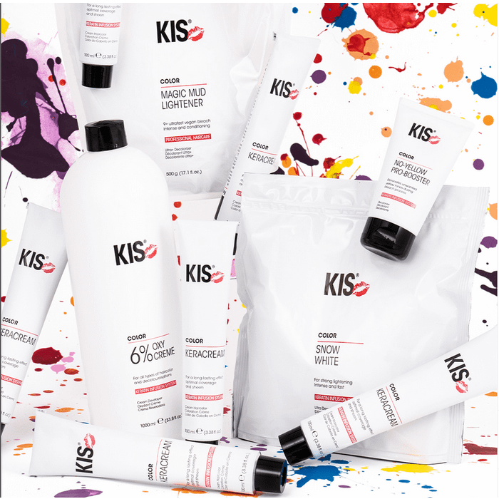 Das enthaltene KIS OxyCream 6% Cremeprodukt sorgt für eine gleichmäßige, sanfte Anwendung und verhindert das Austrocknen von Haar und Kopfhaut. Das macht die Behandlung nicht nur effektiv, sondern auch sicher und angenehm. Zusammen bilden SnowWhite Blonde Powder und OxyCream die ultimative Duo-Lösung für professionelle Salons, die ein gleichmäßiges, kühles und langanhaltendes Blondergebnis anstreben.