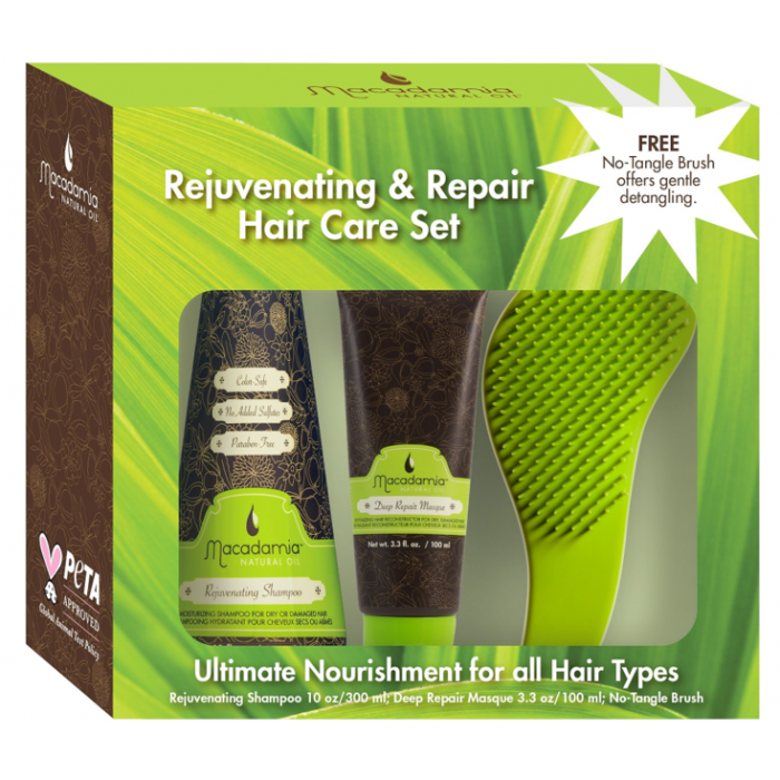 Gönnen Sie Ihrem Haar intensive Pflege mit dem Macadamia Rejuvenating Hair Care Set Limited Edition . Dieses komplette Pflegeset enthält drei Essentials: das Macadamia Rejuvenating Shampoo (300 ml) , die Macadamia Deep Repair Mask (100 ml) und eine praktische Entwirrungsbürste . Zusammen sorgen sie für gesundes, glänzendes und leicht kämmbares Haar.