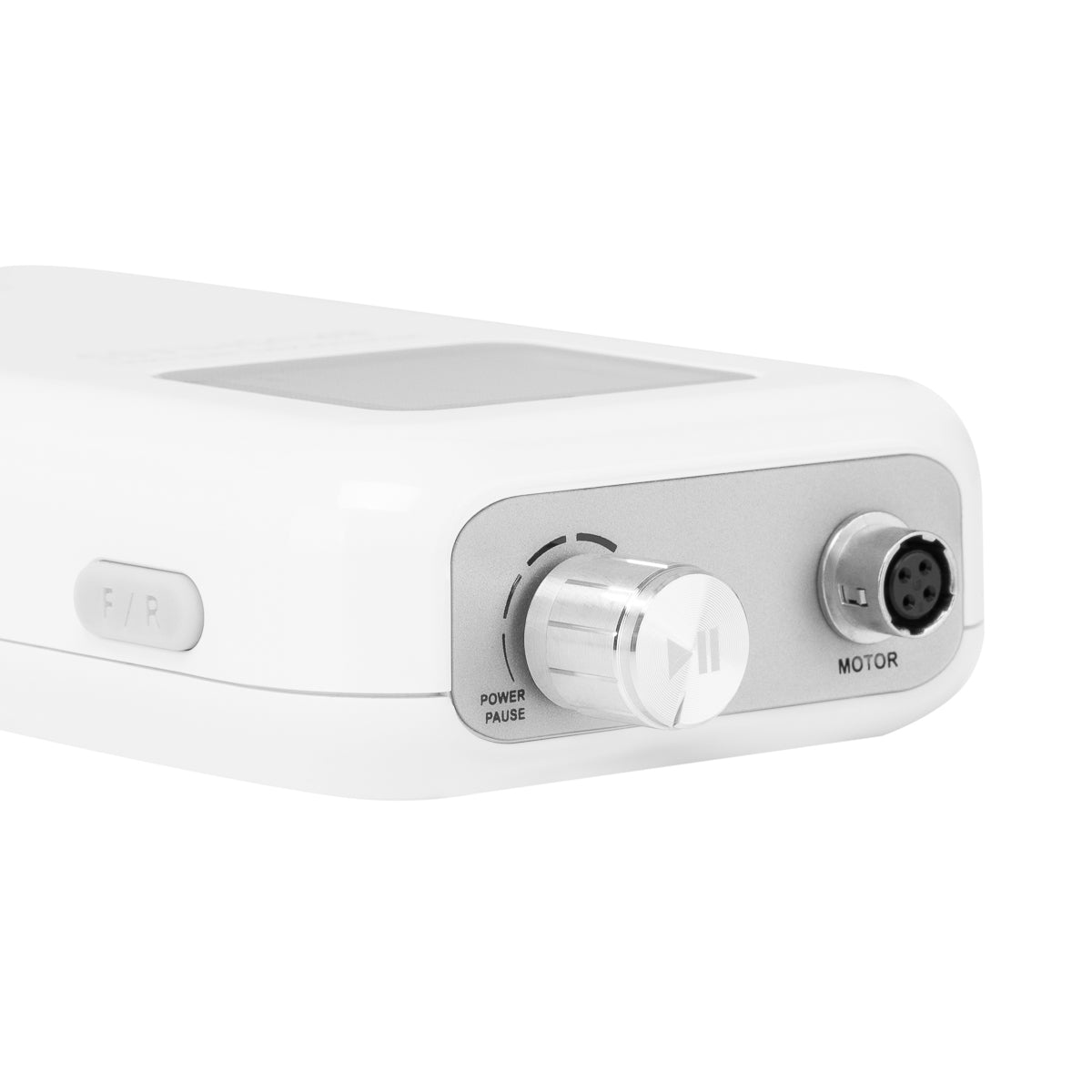 Das minimalistische Kunststoffgehäuse in Weiß vereint Langlebigkeit mit einfacher Reinigung und macht es so zu einer stilvollen Ergänzung für jeden Arbeitsplatz. Dank seiner kompakten Größe und seines geringen Gewichts ist der Nagelfräser ideal für kleine Arbeitsplätze und leicht zu transportieren, wodurch er sich besonders für mobile Dienstleistungen eignet.