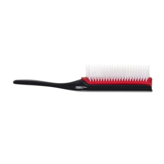 The Denman D4 Large 9-Row Brush Black/Red/White is the ultimate multifunctional styling brush and has been a favorite among hairdressers and stylists worldwide for years. With its nine rows of nylon pins, it glides effortlessly through hair and provides painless detangling without breakage – even on thick or long hair.