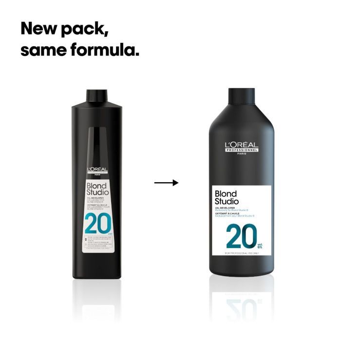 Blond Studio Oil Developers are available in 20 Vol and 30 Vol . The 20 Vol version is perfect for controlled lightening, fragile hair, or clients who want maximum protection without too much lift at once.
