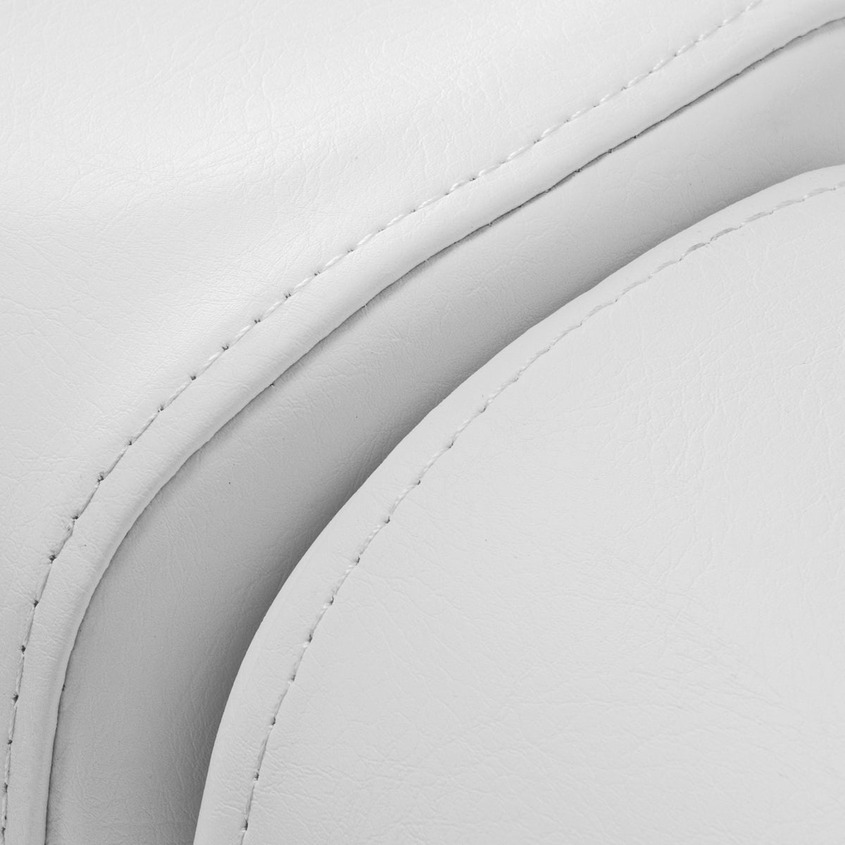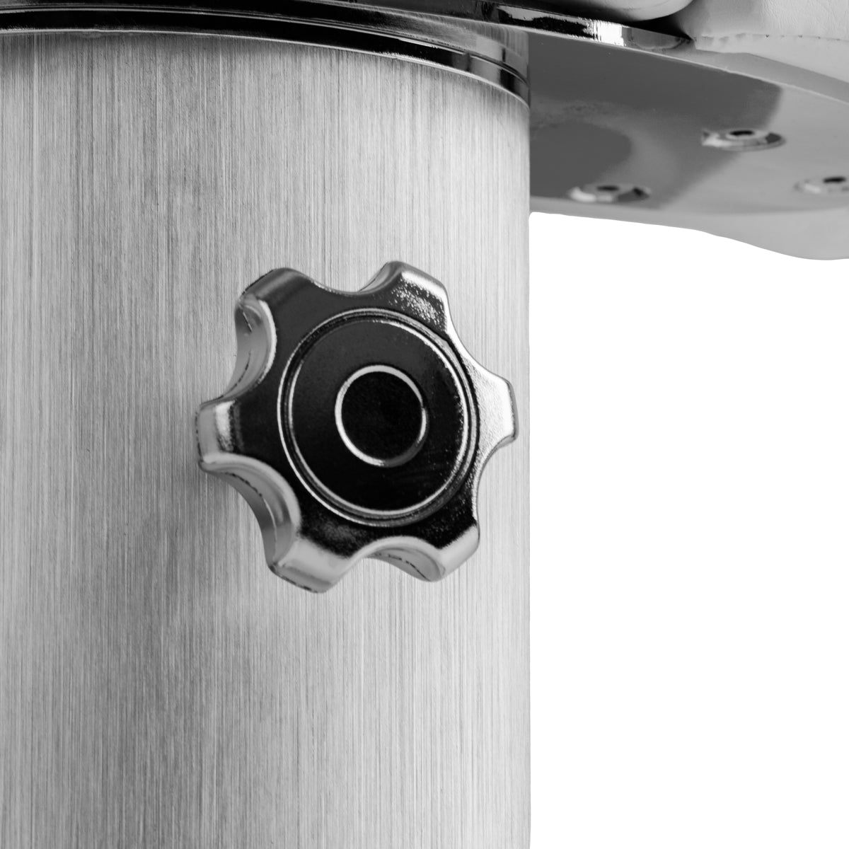 Le chariot réglable avec repose-pieds permet d'adapter la position de travail au client comme au praticien. Le réglage manuel de la hauteur, jusqu'à 20 cm, offre une grande flexibilité pour différentes configurations de soins. Le revêtement en similicuir résistant à l'humidité est facile d'entretien et convient à un usage professionnel.