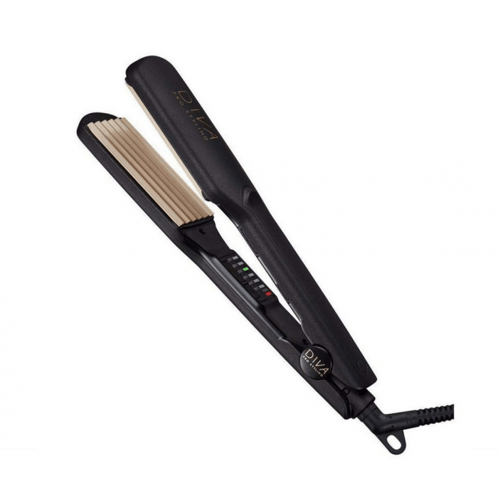 Le Diva Pro Digital Crimper ramène la tendance gaufre des années 90 et donne à vos cheveux un intense coup de volume avec une finition moderne et professionnelle. Avec son design noir mat luxueux et sa technologie de haute qualité, ce crimper est idéal pour les salons comme pour un usage domestique.