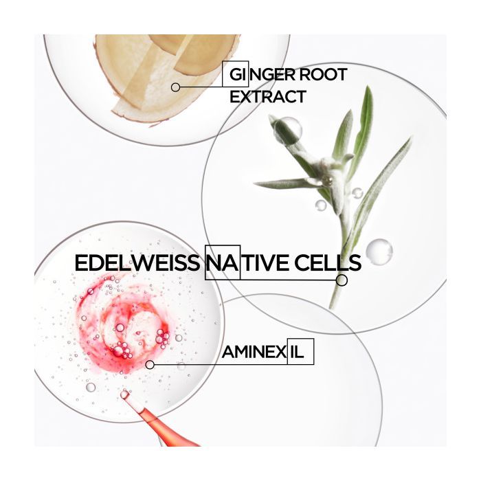Ingrédients actifs : Aminexil, cellules souches d'Edelweiss, racine de gingembre