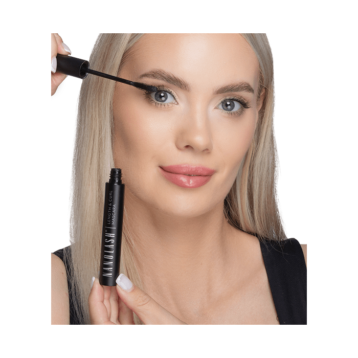 Breng de mascara aan vanaf de wortels van de wimpers en beweeg de borstel zachtjes heen en weer voor maximale dekking en volume. Bouw de intensiteit op door meerdere lagen aan te brengen. Voor een nog spectaculairder effect kun je vooraf de Nanolash Mascara Primer gebruiken.