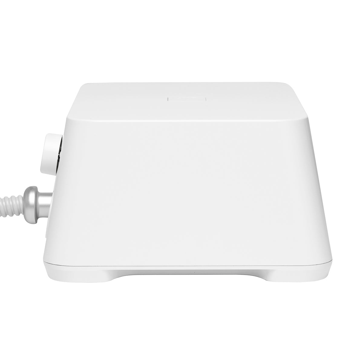 Son design moderne et futuriste, aux tons blancs, s'intègre parfaitement à tout cabinet professionnel. Ses pieds antidérapants assurent une stabilité optimale, et un support spécial permet de reposer la poignée en toute sécurité pendant les soins.