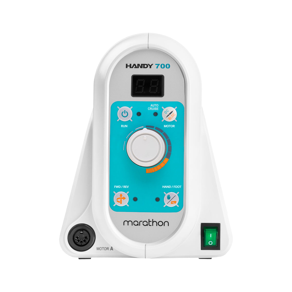 Le Marathon Handy 700 offre une puissance impressionnante de 100 W et une vitesse de rotation maximale de 50 000 tours par minute , ce qui le rend parfaitement adapté aux travaux de précision comme aux traitements intensifs. Grâce à son système de réduction du bruit intégré au micromoteur, il est jusqu'à 20 % plus silencieux que les modèles classiques, améliorant considérablement le confort d'utilisation lors de travaux prolongés.