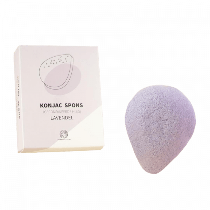 ShampooBars Eponge Konjac Peau Mixte Lavande est le choix idéal pour ceux qui ont une peau mixte (front gras et joues sèches). Cette éponge nettoyante violette élimine les cellules mortes de la peau, absorbe le sébum et la saleté et nettoie les pores en douceur. Grâce à l'ajout de lavande, l'éponge a en plus un effet apaisant et calmant.