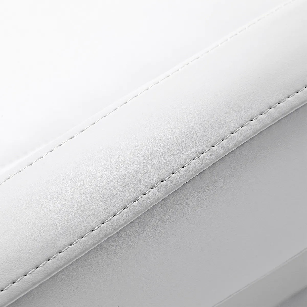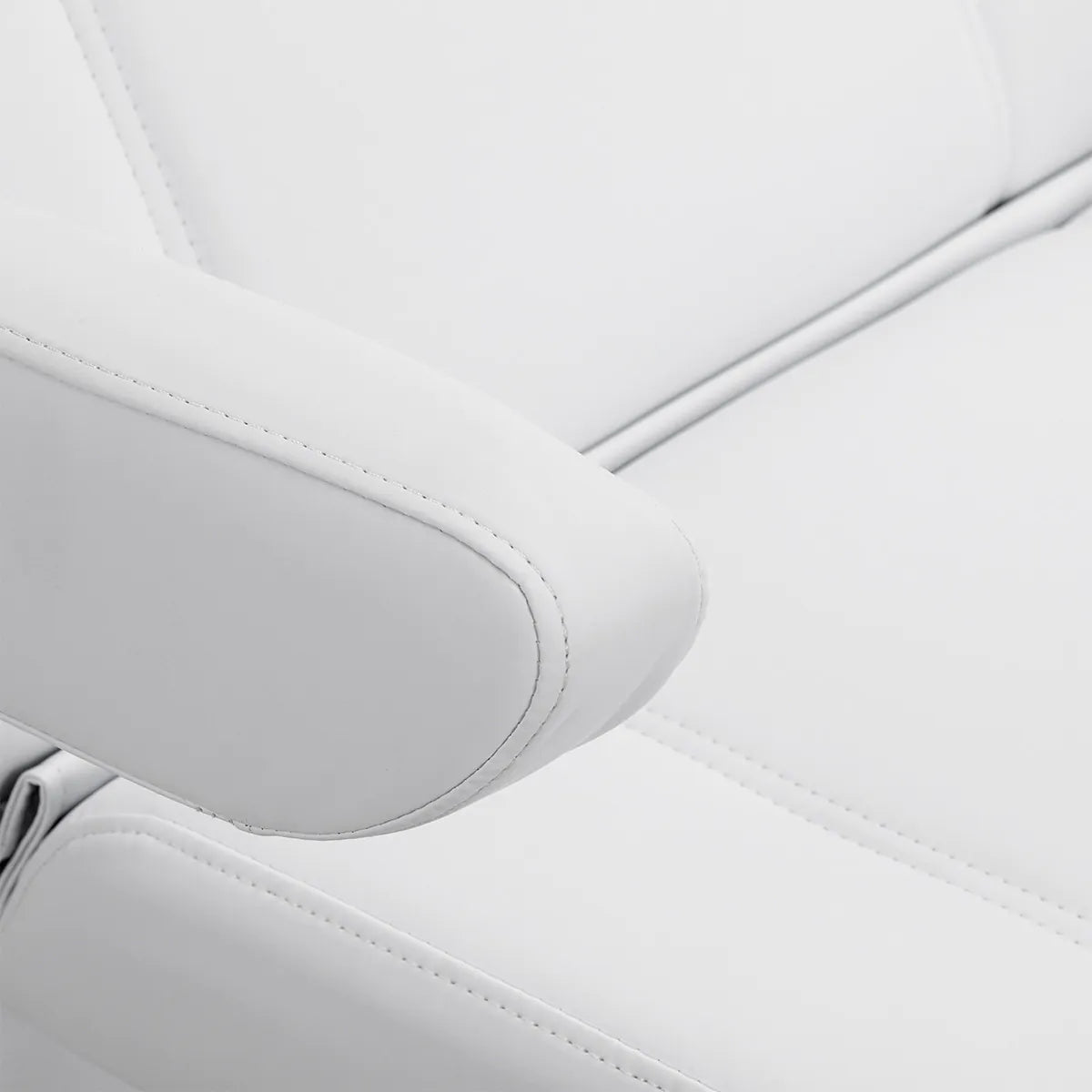 De solide constructie van de stoel staat garant voor stabiliteit en duurzaamheid bij dagelijks intensief gebruik. De zitting is gevuld met schuim van zorgvuldig geselecteerde hardheid, wat langdurig comfort biedt tijdens uitgebreide behandelingen. De hoogwaardige synthetische lederen bekleding in wittinten geeft de stoel een professionele uitstraling en is vochtbestendig en eenvoudig te onderhouden. De robuuste basis en nauwkeurige afwerking benadrukken het moderne karakter en verbeteren de ergonomie van de stoel.