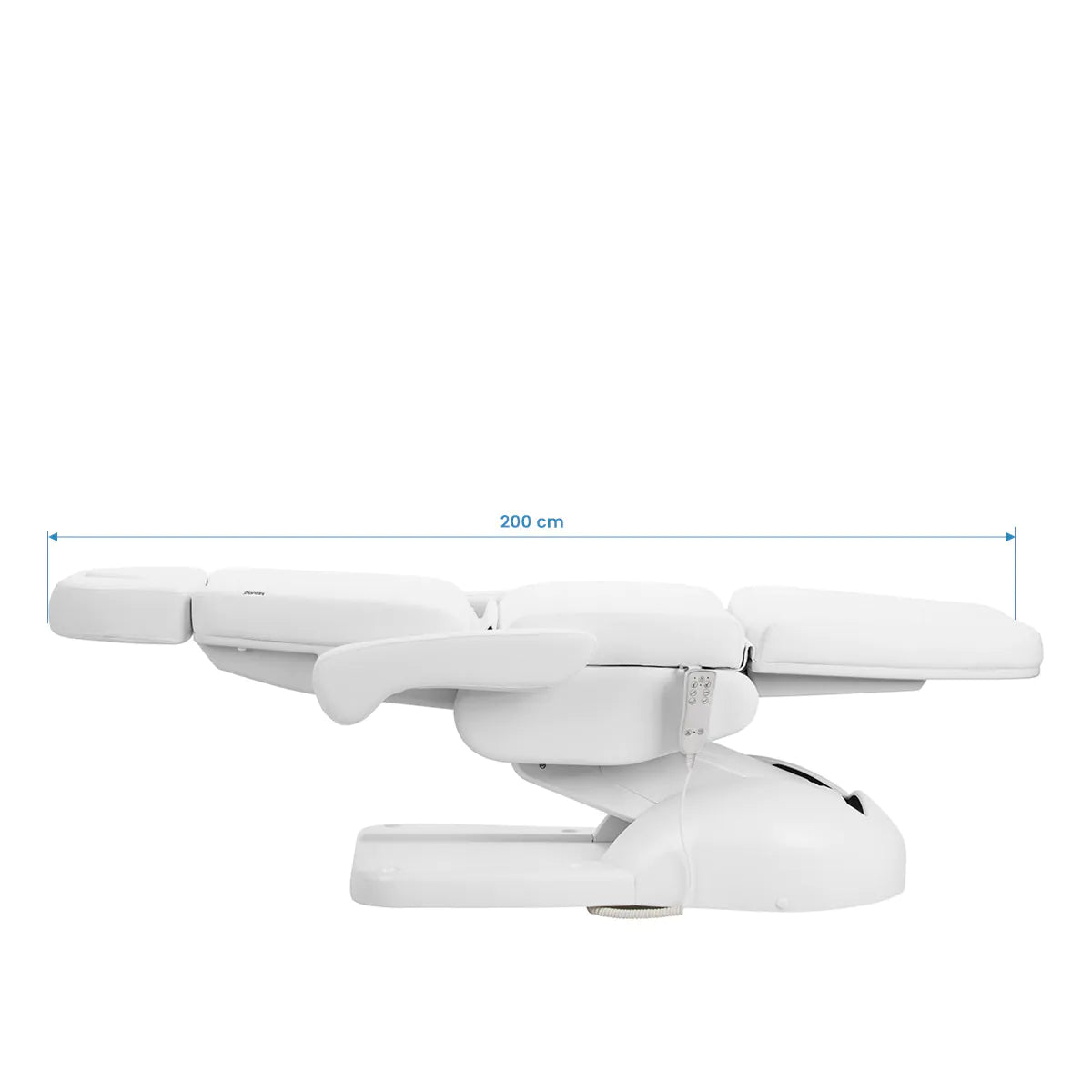 De Azzurro Lux elektrische cosmetische stoel met verwarmingsfunctie is een moderne oplossing, speciaal ontworpen voor veeleisende specialisten. Dankzij drie krachtige actuatoren die via een bedraad systeem worden aangestuurd, is een nauwkeurige, soepele en probleemloze verstelling van de afzonderlijke onderdelen van de stoel gegarandeerd. De hoge stabiliteit en veelzijdigheid maken deze stoel uitermate geschikt voor schoonheidsbehandelingen, podologie en esthetische geneeskunde. De intuïtieve bediening en uitgebreide instelmogelijkheden zorgen voor een perfecte afstemming op zowel cliënt als behandelaar.