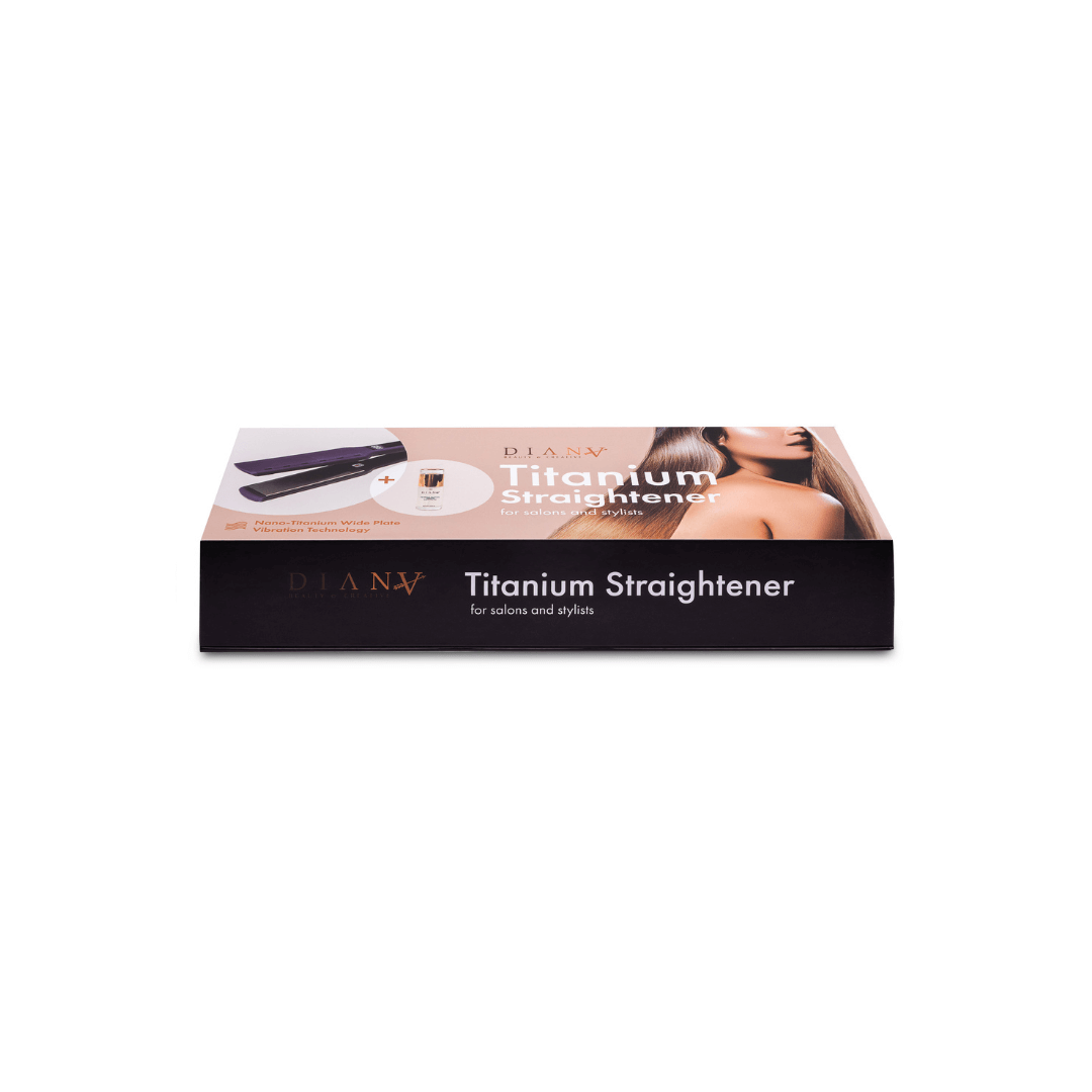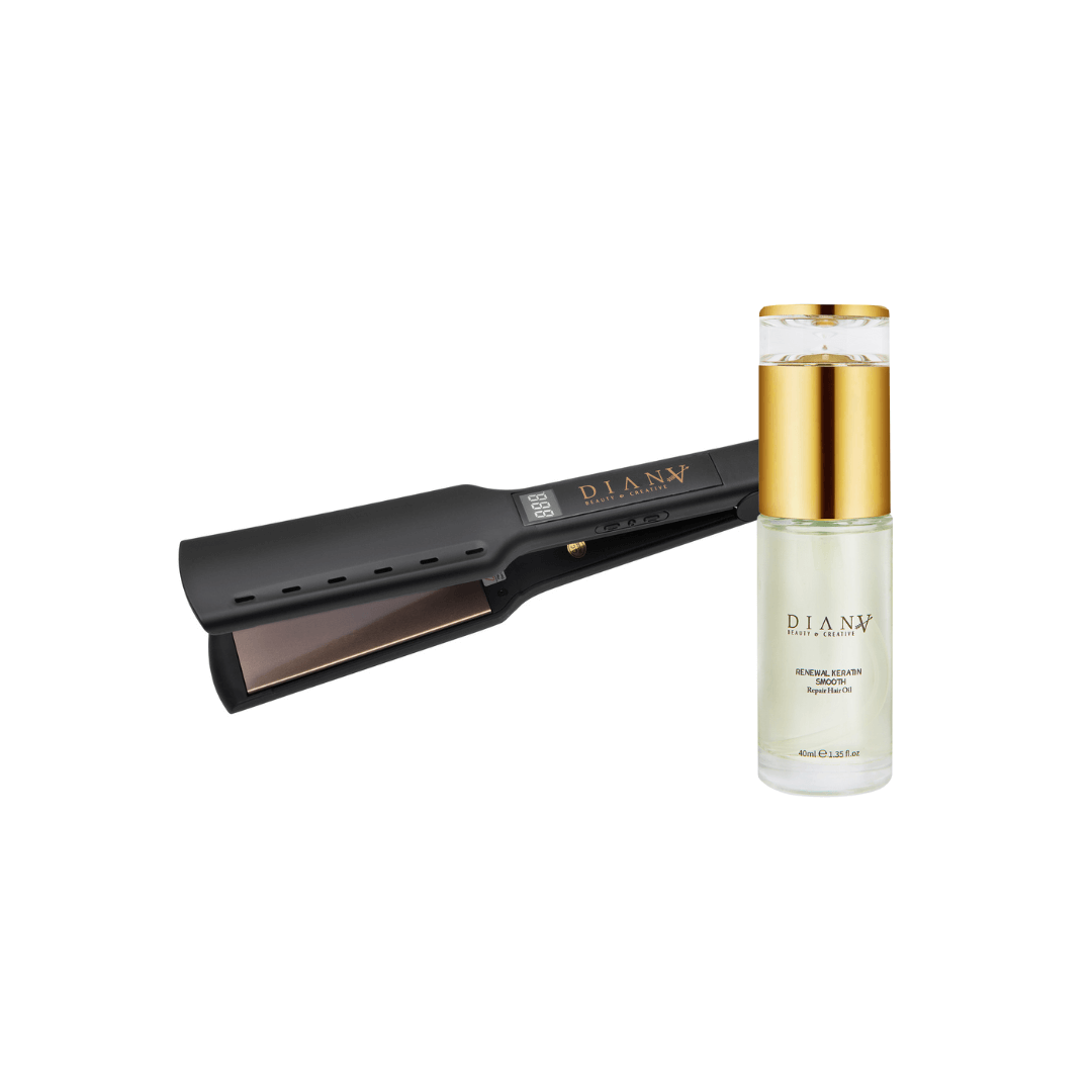 De set bevat de Diana NANO stijltang, een verzorgende haarolie en de handleiding.
