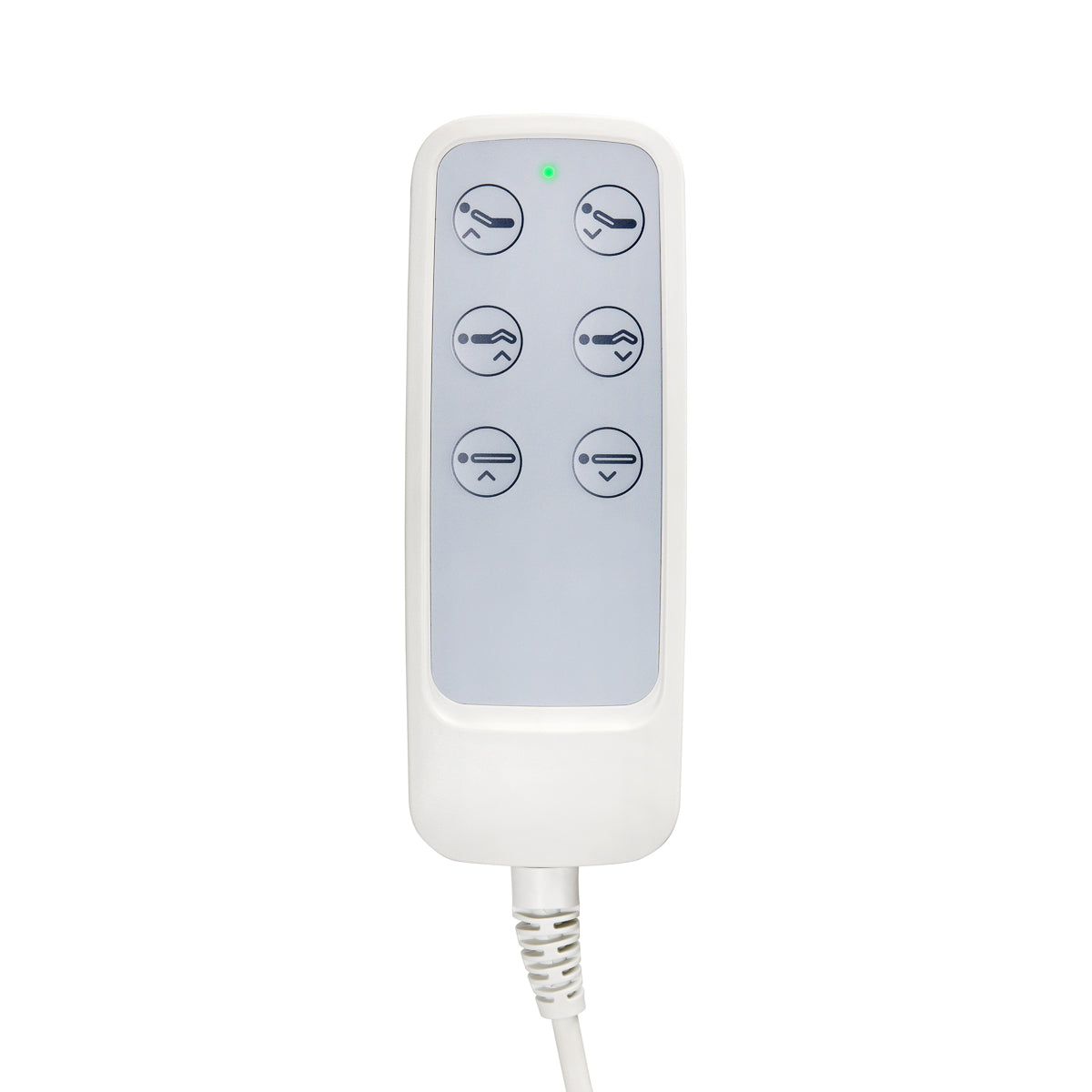 De stoel is elektrisch verstelbaar in drie vlakken: hoogte, rugleuning en voetsteun.