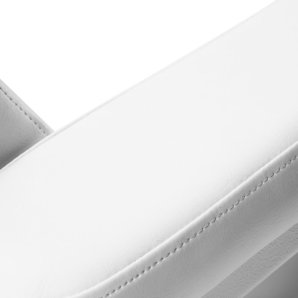 De stoel is gevuld met vormvast schuim en bekleed met aangenaam aanvoelend synthetisch leer in witte tinten. Dit materiaal is vochtbestendig, slijtvast en eenvoudig te reinigen. Zorgvuldig afgewerkte stiksels geven een stijlvolle uitstraling, terwijl de solide constructie stabiliteit en langdurig gebruik garandeert. Het minimalistische ontwerp en de klassieke kleurstelling maken de stoel passend voor vrijwel elk interieur.