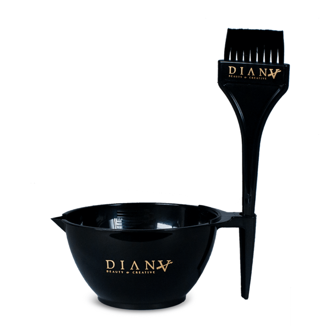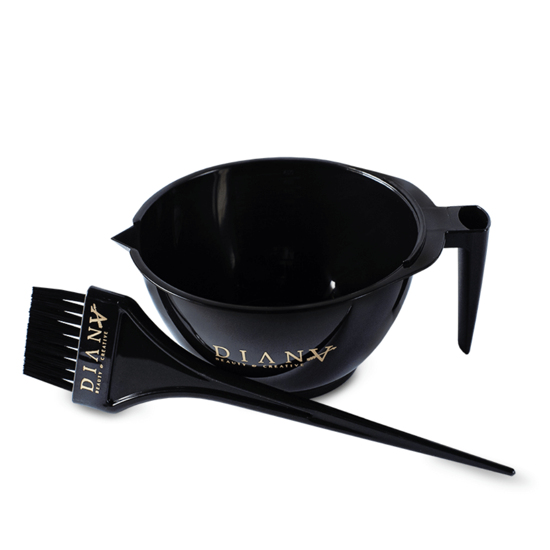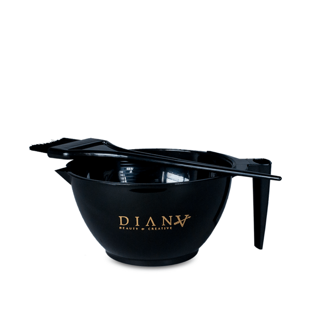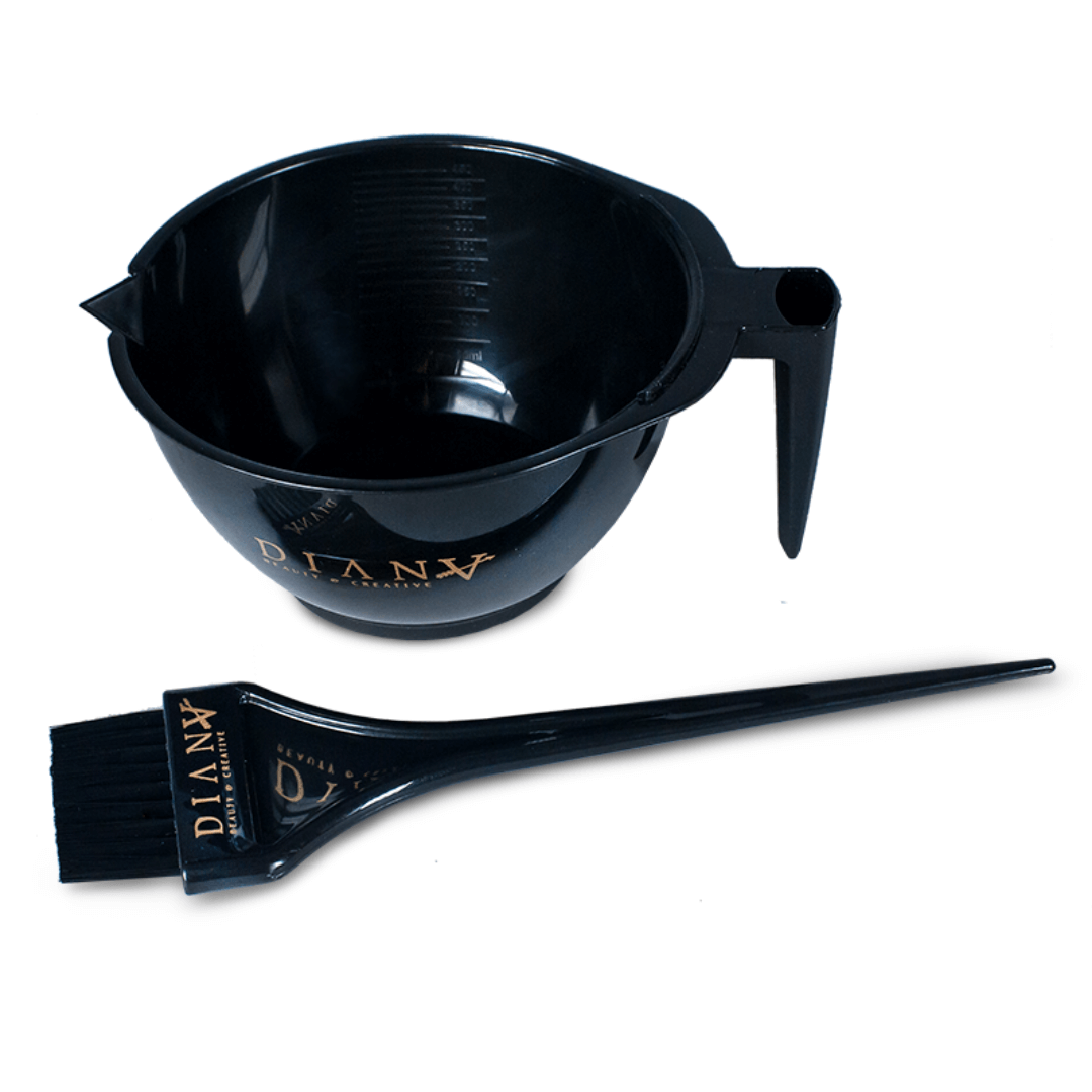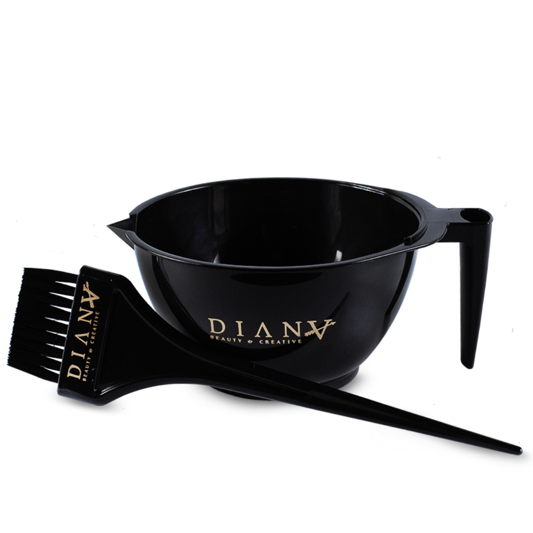 De set bevat een mixkom en een applicatiekwast, beide voorzien van het Diana Beauty & Creative-logo, wat zorgt voor een luxueuze en consistente uitstraling in uw salon.