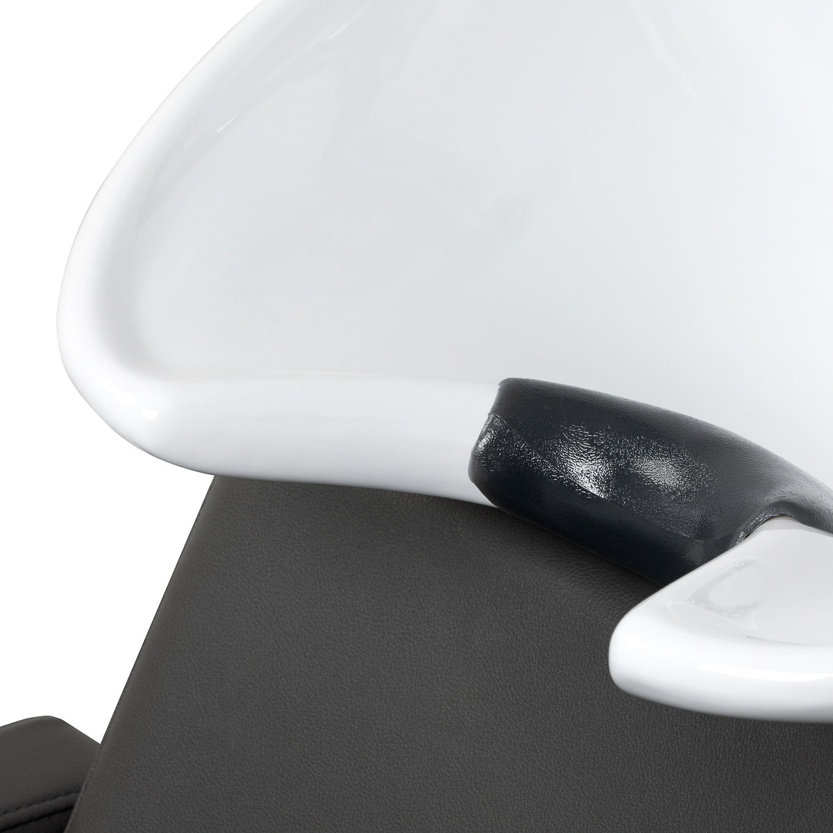De diepe keramische wasbak in wit voorkomt effectief overmatig opspatten van water en producten, wat het werken comfortabel en nauwkeurig maakt. Dankzij de verstelbare constructie kan de hellingshoek eenvoudig worden aangepast aan individuele behoeften. Het keramiek is duurzaam, krasbestendig en kleurvast en bovendien eenvoudig te reinigen. De ergonomisch gevormde rand biedt goede ondersteuning voor het hoofd, terwijl de zachte kunststof nekbeschermer in zwarttinten het koude gevoel van keramiek elimineert.