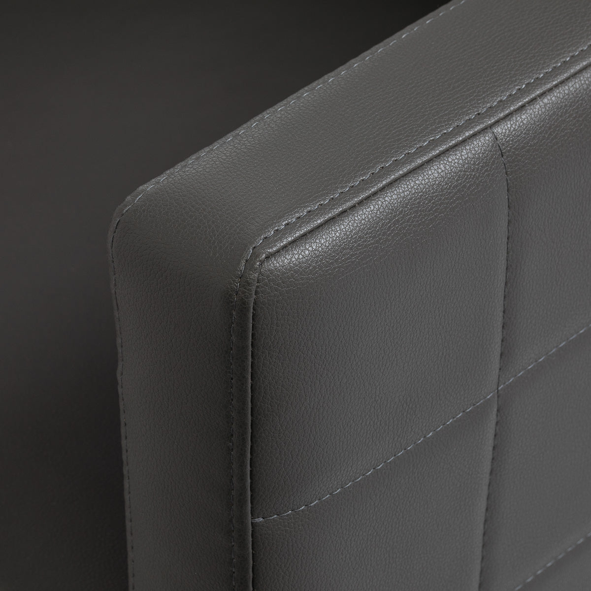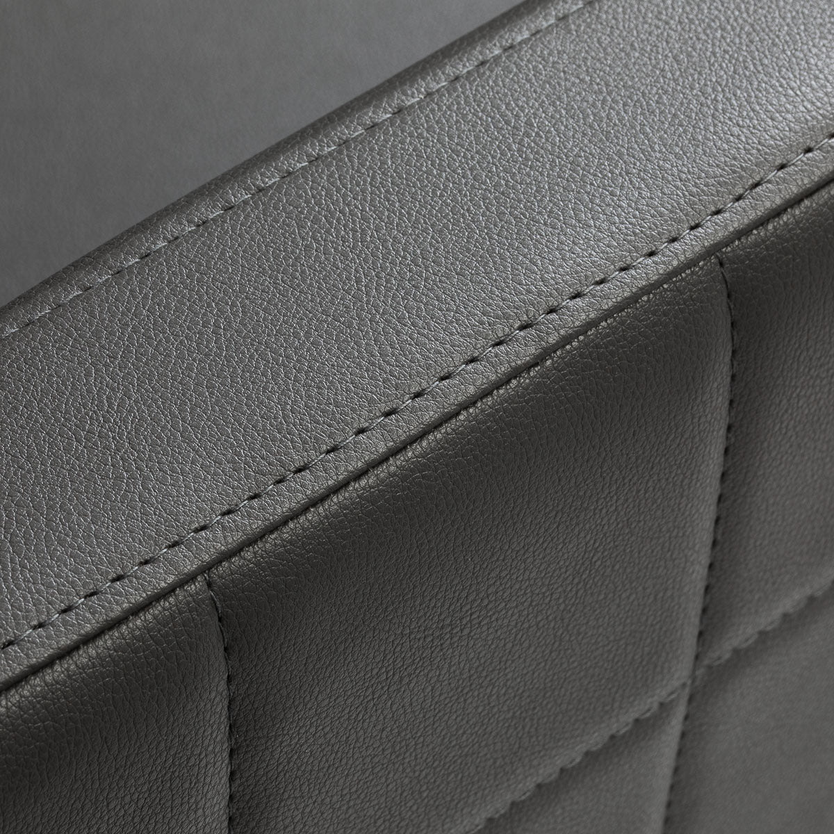 De ergonomisch gevormde stoel, gevuld met duurzaam en vormvast schuim, biedt hoog zitcomfort voor zowel klant als stylist. De beklede armleuningen met decoratieve zijstiksels zorgen voor een natuurlijke positie van armen en schouders en ondersteunen een correcte zithouding. De licht achterover hellende rugleuning biedt extra ondersteuning van de wervelkolom, wat het comfort tijdens langere behandelingen verhoogt. De bekleding van hoogwaardig synthetisch leder in grijstinten is slijtvast, onderhoudsvriendelijk en elegant. Het geheel vormt een modern en visueel aantrekkelijk meubelstuk dat perfect past in een professionele kapsalon.