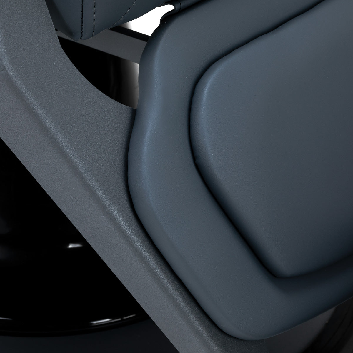 Het ergonomisch gevormde zitvlak en de zorgvuldig geprofileerde rugleuning garanderen hoog comfort, zelfs tijdens langere behandelingen. De beklede armleuningen zijn op een optimale hoogte geplaatst en zorgen voor een correcte positionering van de armen, waardoor spanning in nek en schouders wordt verminderd. Het volledige rotatiemechanisme verhoogt de flexibiliteit tijdens het werken en maakt het eenvoudig om de stoel snel in de gewenste positie te draaien.