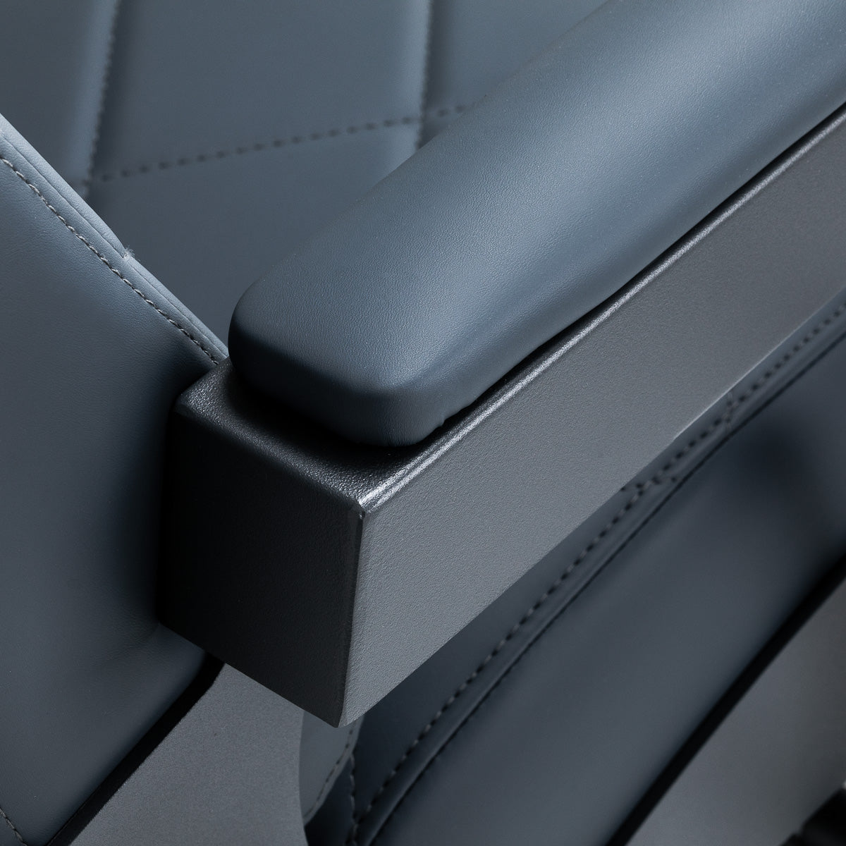 De grafietkleurige bekleding en het bijpassende frame geven de stoel een moderne, professionele en elegante look.