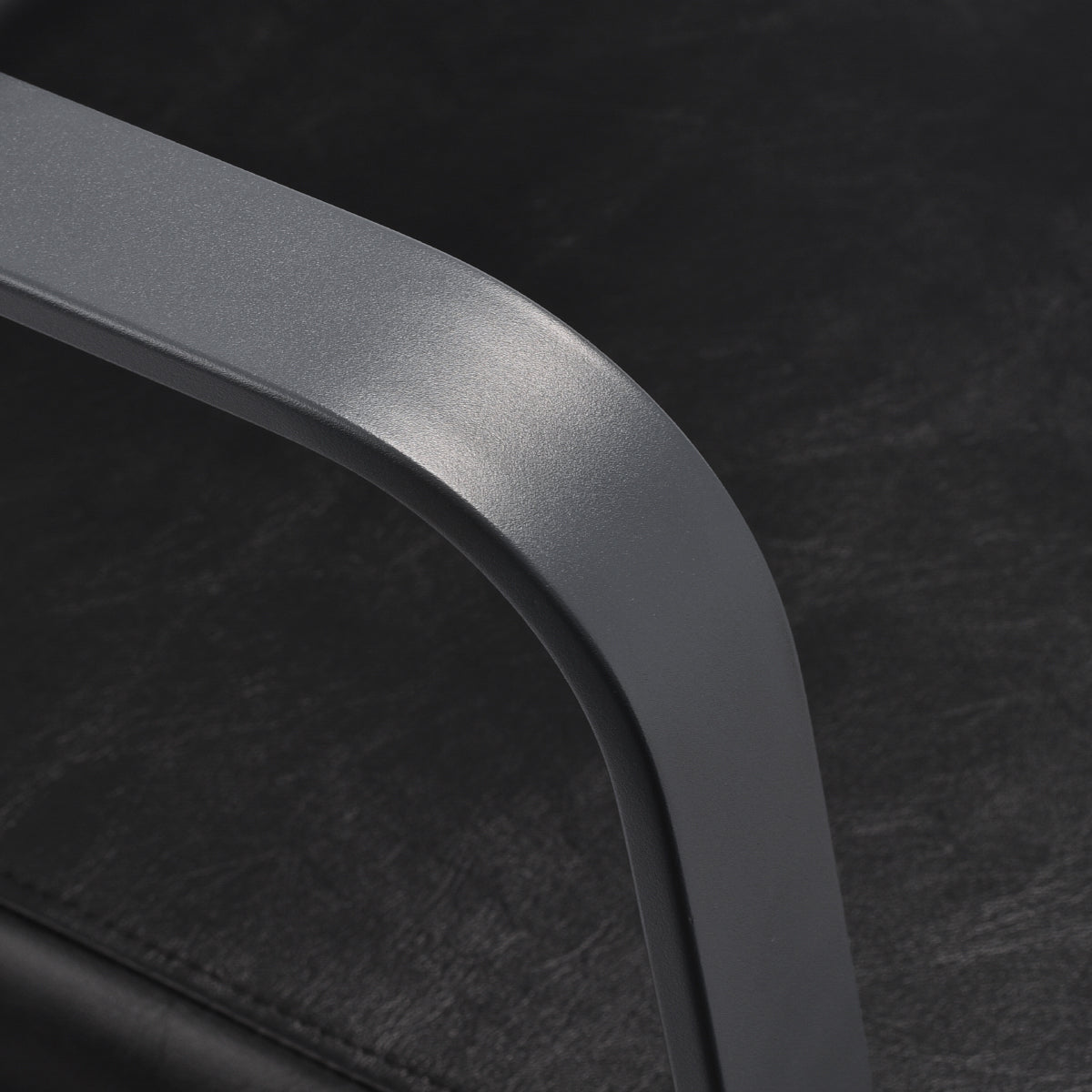 De vulling van duurzame, vormvaste schuimstof en de bekleding van hoogwaardig synthetisch leder garanderen lange levensduur en comfortabel gebruik. De gebruikte materialen zijn vochtbestendig, slijtvast en eenvoudig te reinigen, wat essentieel is in een professionele salonomgeving. De zwarte bekleding geeft de stoel een krachtige, moderne uitstraling. Dankzij het eigentijdse design past deze kappersstoel perfect in uiteenlopende professionele salonconcepten.