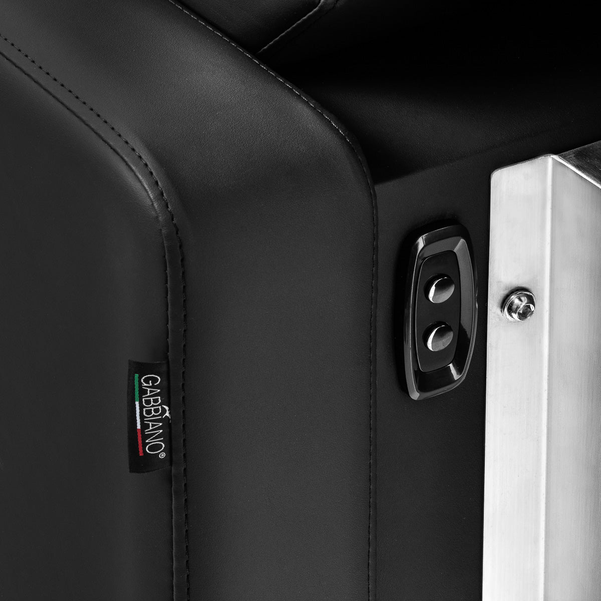 De Gabbiano Sylvia wasunit is ontworpen met maximaal comfort voor zowel klant als stylist en is ideaal voor verzorging, kleuring en langere procedures. De strakke, geometrische lijnen geven een moderne en elegante uitstraling. De rugleuning staat in een optimale hoek voor goede ondersteuning van de wervelkolom, terwijl decoratieve stiksels het geheel verfijnen. De zitting is gevuld met duurzaam schuim en de beklede armleuningen zorgen voor correcte positionering van schouders en armen. De synthetisch lederen bekleding in zwarttinten is slijtvast, vochtbestendig en eenvoudig te reinigen, waardoor de wasunit het saloninterieur stijlvol accentueert.