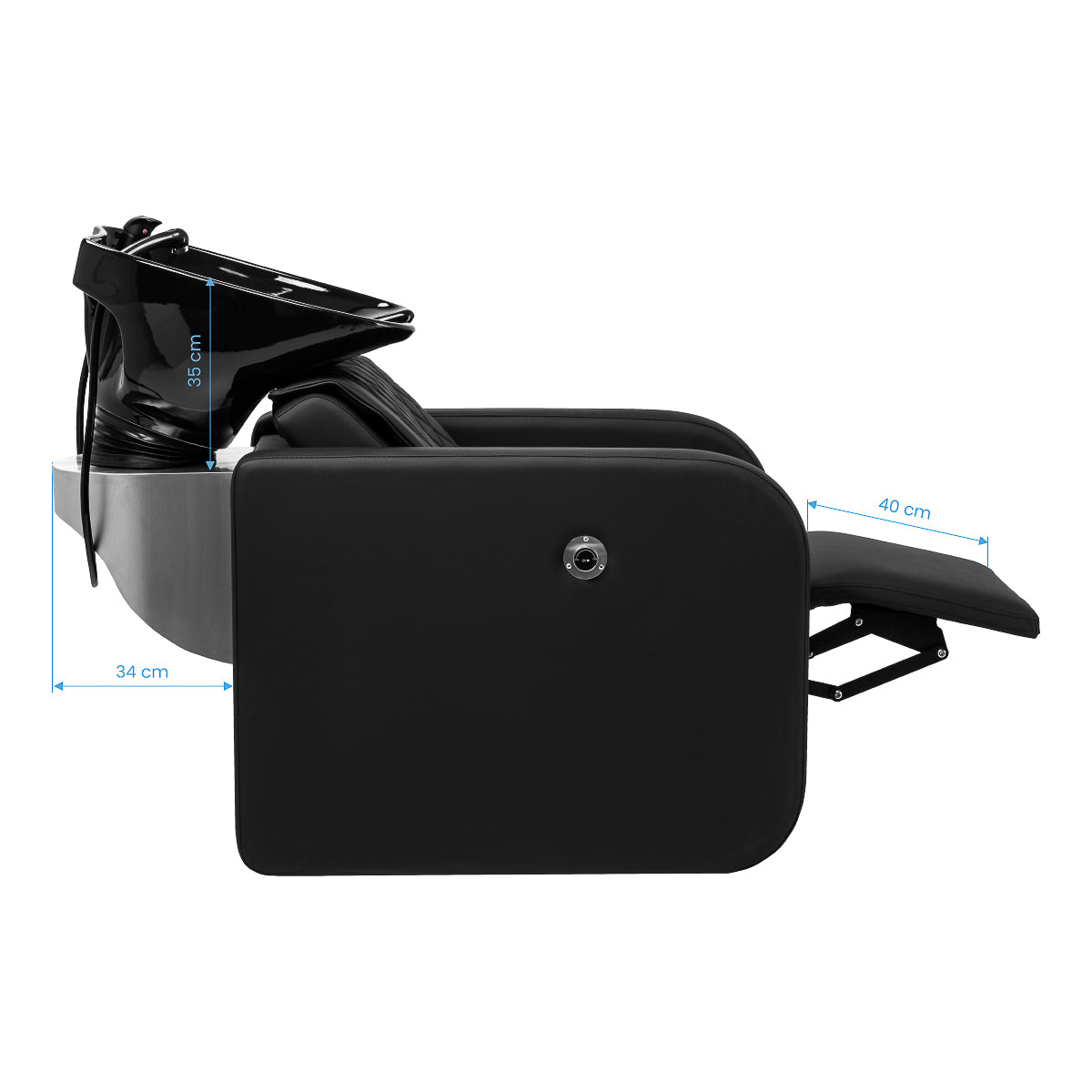 De Gabbiano Sylvia elektrische kapperswasunit met rugmassagefunctie combineert comfort, esthetiek en functionaliteit in één doordacht ontwerp. De uitklapbare, elektrisch verstelbare voetensteun maakt het eenvoudig om de positie nauwkeurig af te stemmen op de klant, wat het comfort tijdens het haarwassen aanzienlijk verhoogt. Intuïtieve bediening en ergonomische vormgeving zorgen voor efficiënt werken en een aangename beleving voor de klant.