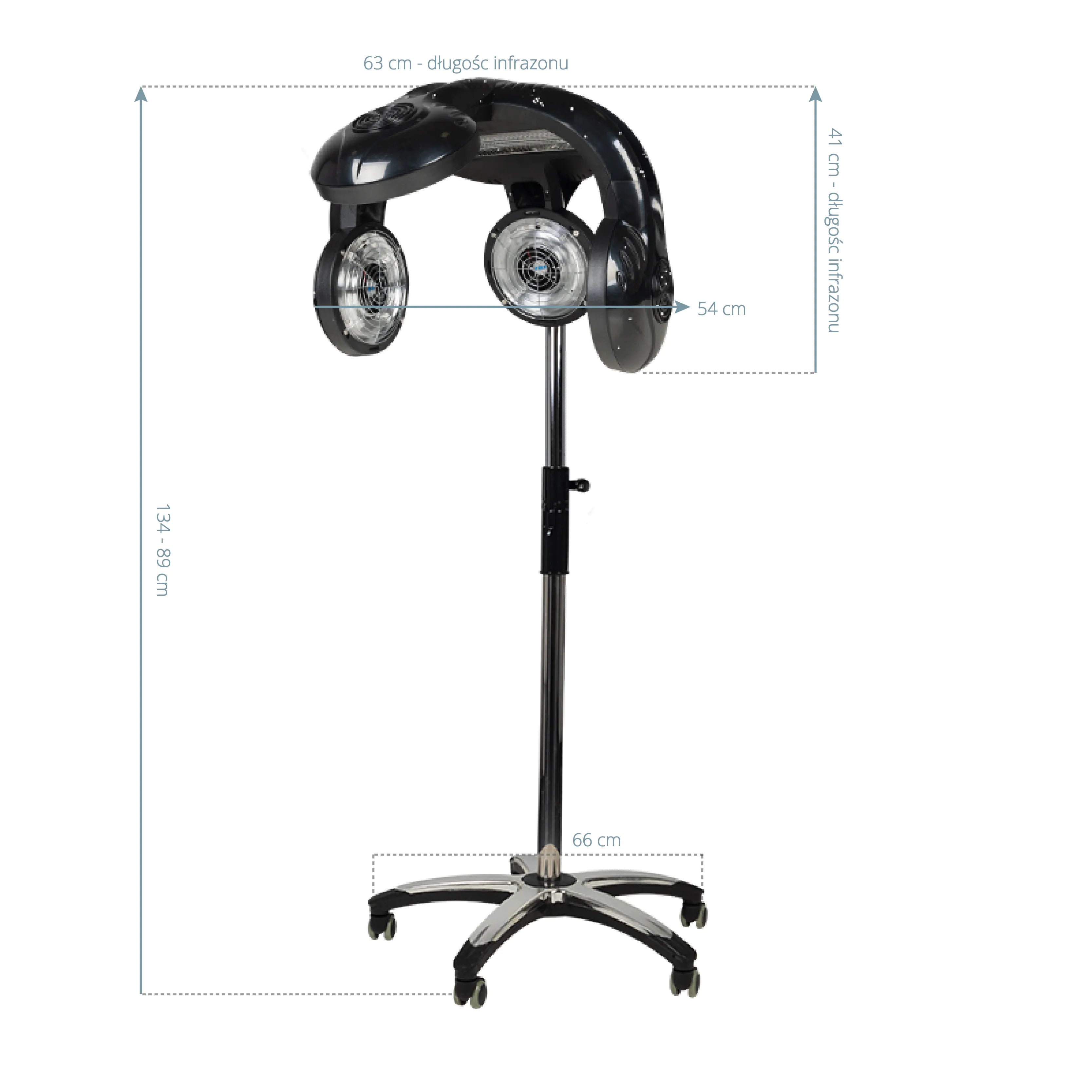 Plaats de infrazon op een vlakke ondergrond en stel de gewenste hoogte in. Kies de juiste temperatuur en tijd afhankelijk van de behandeling. Positioneer het apparaat boven het hoofd van de klant en start het programma. Na afloop schakelt het apparaat automatisch uit.