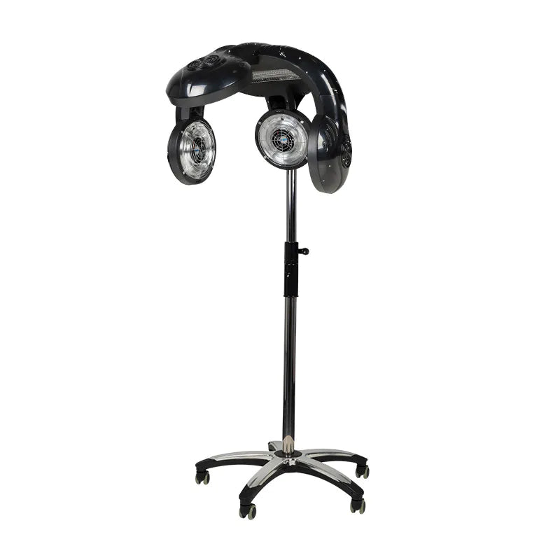 De infrazon is uitgerust met 5 verwarmingskoppen en 4 ventilatoren, wat zorgt voor een optimale warmteverdeling rondom het hoofd. Deze configuratie garandeert consistente resultaten bij elke behandeling en verhoogt het comfort voor de klant.