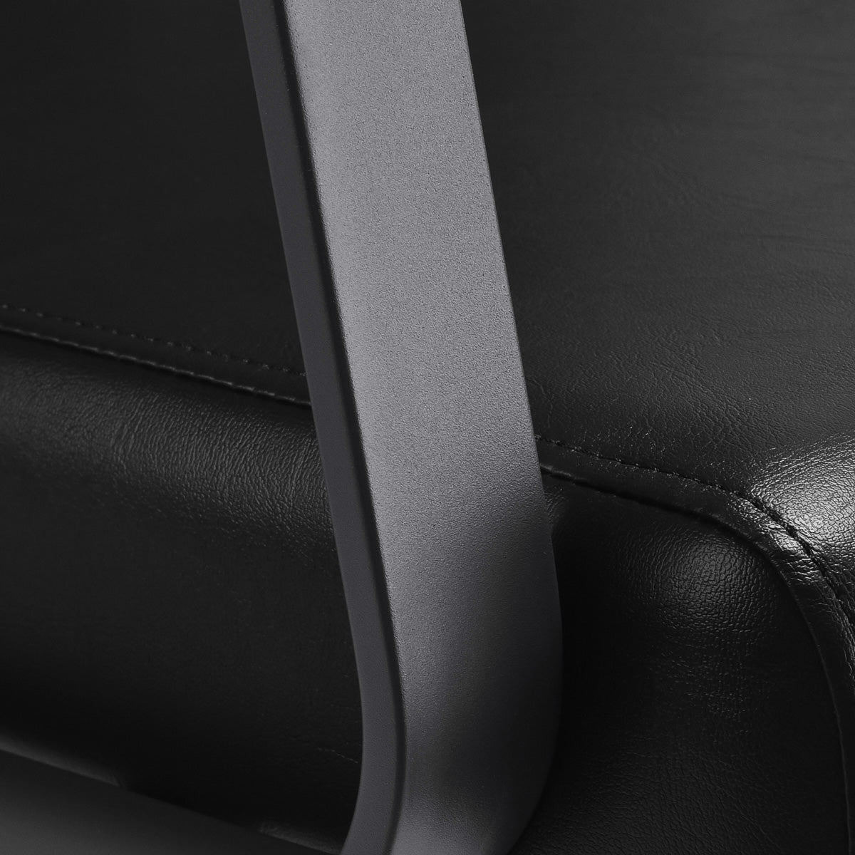 De ergonomisch gevormde stoel biedt uitstekende lendenondersteuning en daarmee een hoog zitcomfort. De metalen armleuningen in grijstinten met een geometrische vorm zorgen voor een correcte positionering van de schouders van de klant. De vulling van duurzame, vormvaste schuimstof en de bekleding van hoogwaardig synthetisch leder in zwarte tinten garanderen lange levensduur, eenvoudige reiniging en comfortabel gebruik, zelfs bij intensief salonwerk. Het moderne en elegante ontwerp geeft elke kapsalon een professionele en tijdloze uitstraling. De set wordt geleverd met complete armaturen in zwart, inclusief kraan, handdouche en bijpassende slangen, zodat je direct beschikt over een volledig gebruiksklare wasunit.