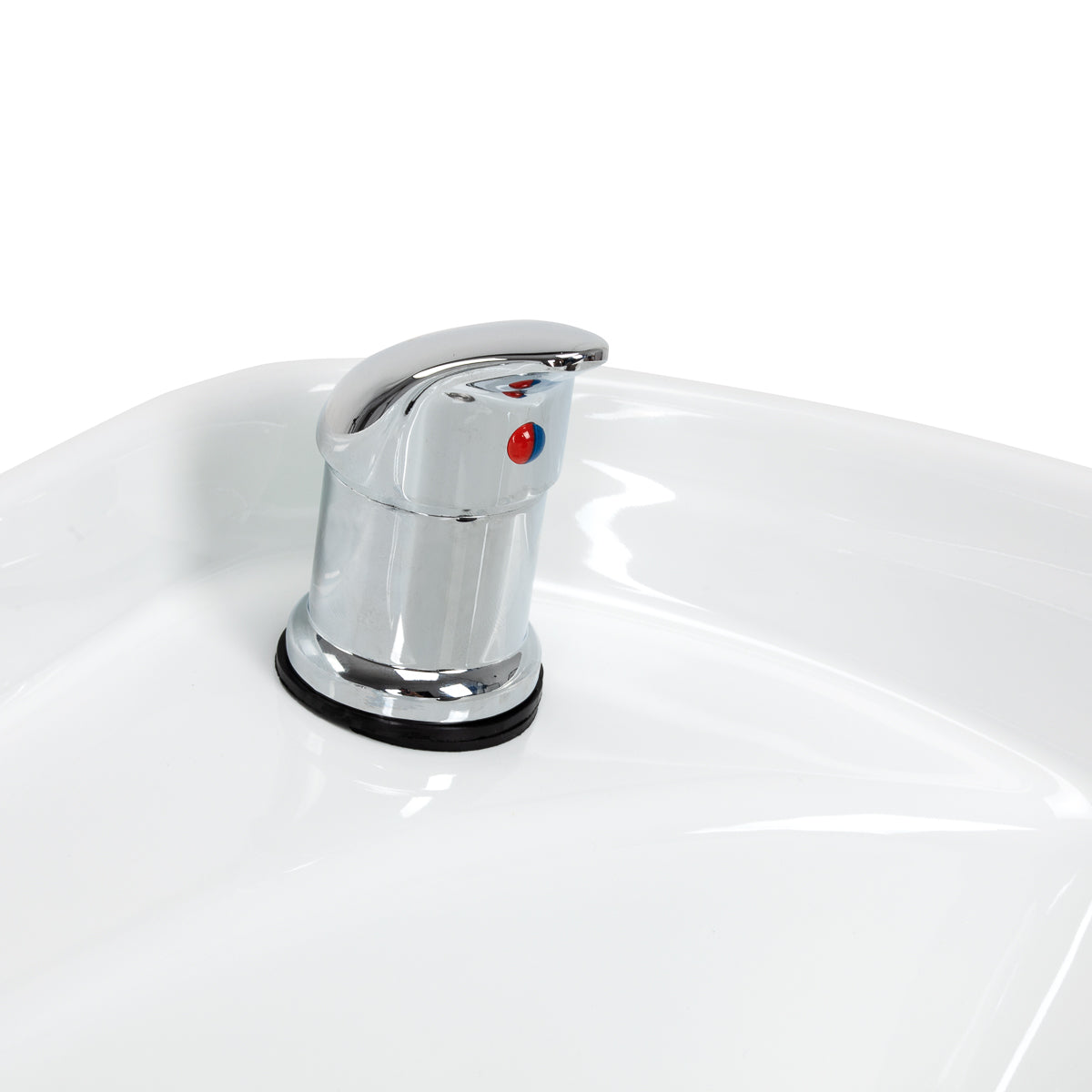 De diepte van de keramische waskom in wittinten maakt comfortabel en efficiënt uitvoeren van diverse kappersbehandelingen mogelijk en voorkomt overmatig spatten van water en producten. Het gebruikte materiaal maakt de waskom duurzaam, bestand tegen verkleuring en krassen en zeer eenvoudig te reinigen. De correct gevormde rand en de schuin geplaatste rugleuning bieden ondersteuning en comfort tijdens het wassen van het haar. Dankzij de comfortabele kunststof nekbeschermer in zwarttinten voelt de klant geen onaangename kou van het keramische oppervlak.