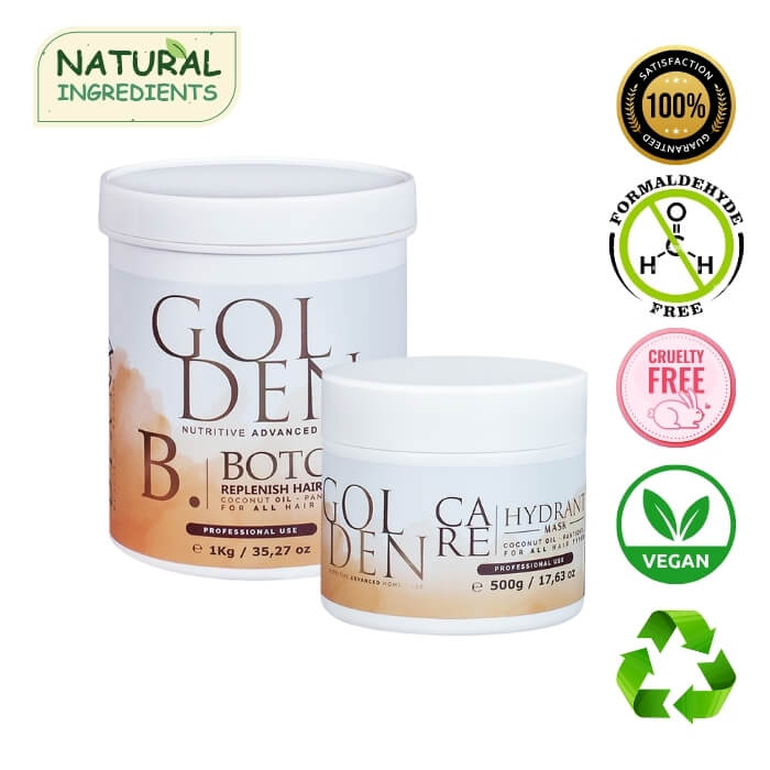 Let op: Golden Botox bevat gouden microdeeltjes die tijdelijk een warmere toon aan het haar kunnen geven — dit is een optische illusie, die verdwijnt na de volgende wasbeurt.
