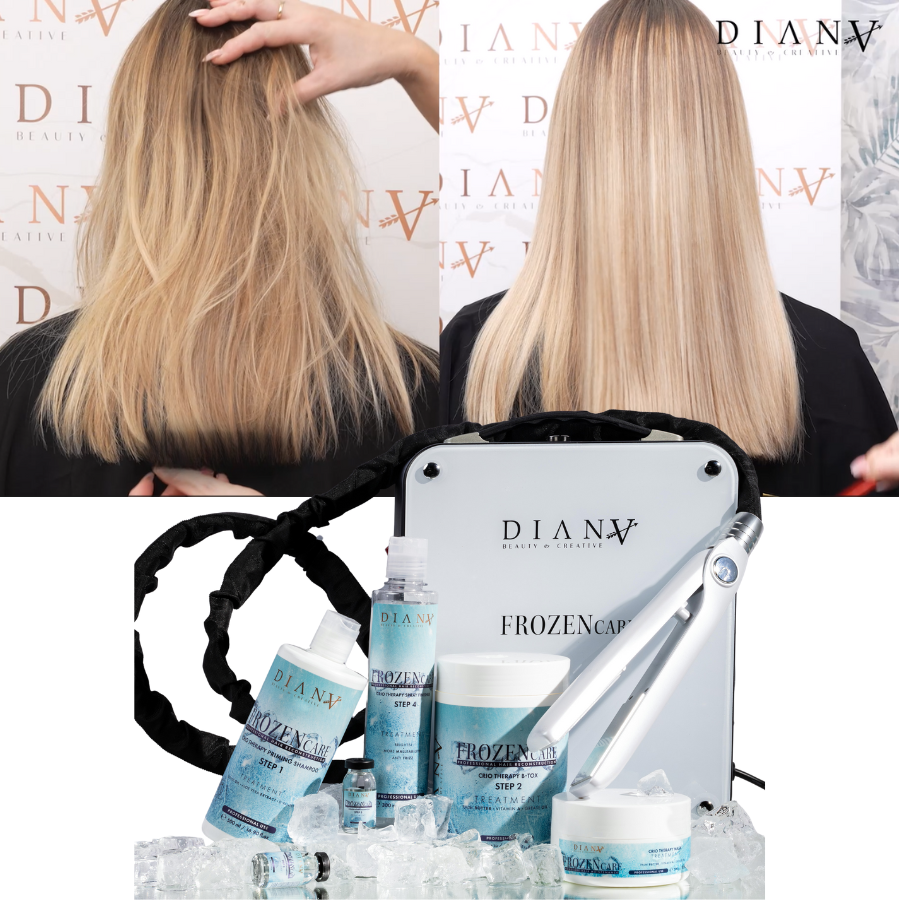 Frozen Care Haarbotox Stap 2 is het hart van de professionele Frozen Cryotherapie-lijn — een revolutionaire koude-herstelbehandeling die het haar voedt, versterkt, herstructureert en glad maakt zonder het te verzwaren.
