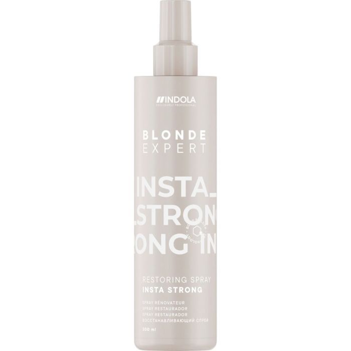 De Indola Blonde Expert InstaStrong Restoring Spray 300ml is een professionele, krachtversterkende pre-treatment spray die het haar optimaal voorbereidt op intensieve kleurservices zoals oplichten en toning. Deze formule, speciaal ontwikkeld voor gebruik in de salon, versterkt het haar vóór het chemische proces begint, waardoor het beter bestand is tegen de belasting van blondeer- en tonerbehandelingen.