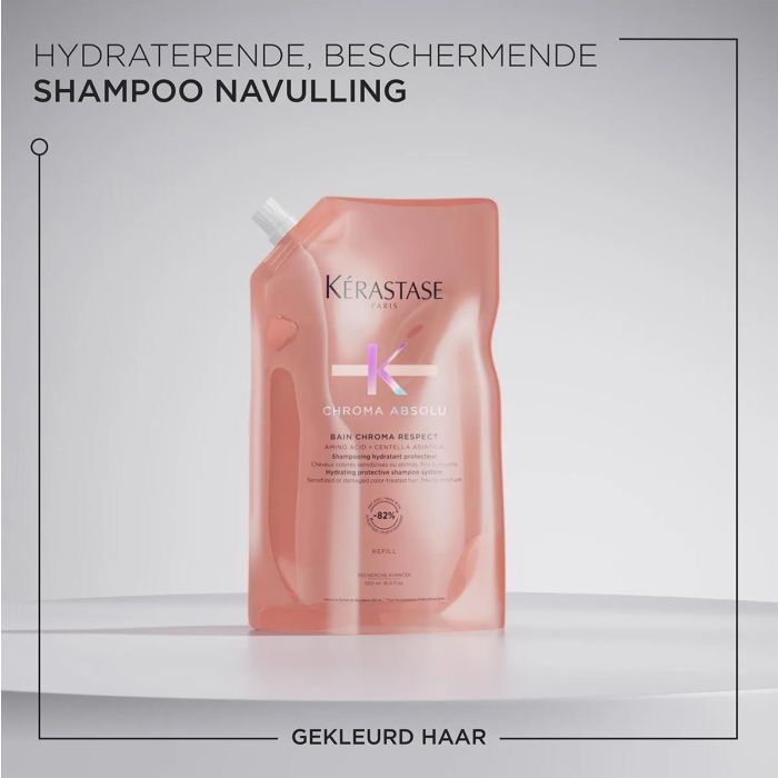De Kérastase Chroma Absolu Bain Chroma Respect 500ml + Refill 500ml is dé luxe oplossing voor medium tot dik gekleurd haar dat extra voeding, glans en bescherming nodig heeft. Deze zachte shampoo reinigt op milde wijze en helpt tegelijkertijd de haarkleur te behouden.