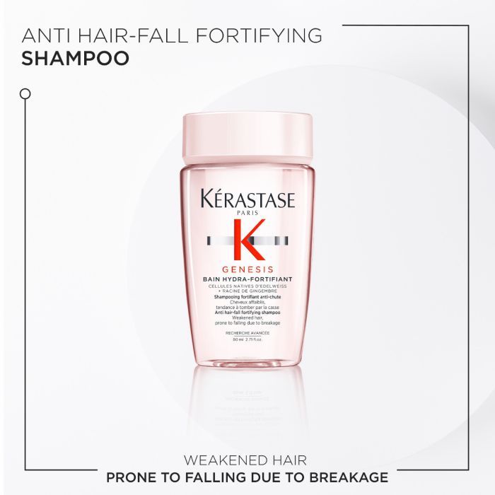 Bain Hydra-Fortifiant Shampoo (80ml) – reinigt mild, verwijdert onzuiverheden en versterkt de haarvezel om haaruitval door breuk te verminderen.