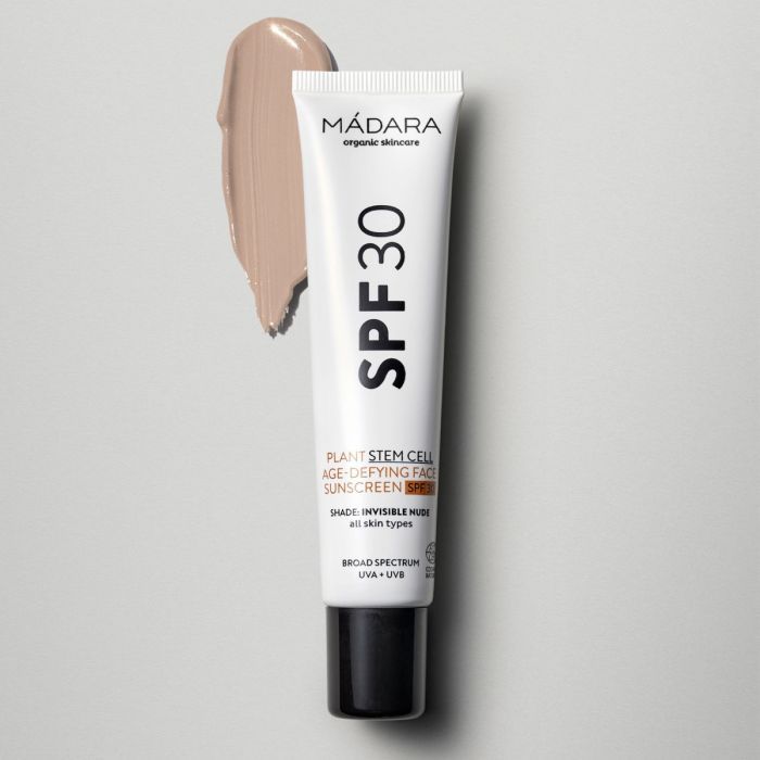 De MÁDARA Plant Stem Cell Age-Defying Face Sunscreen SPF 30 40ml is een geavanceerde anti-aging zonbescherming die veel verder gaat dan een standaard SPF. Dankzij een innovatieve formule met plantenstamcellen van de noordelijke drakenkop biedt deze minerale zonnecrème niet alleen breedspectrumbescherming tegen UVA- en UVB-straling, maar helpt ze actief schade door vrije radicalen, vervuiling en blauw licht te neutraliseren. Het resultaat is een zichtbaar stevigere, jeugdiger en egalere huid, elke dag opnieuw.