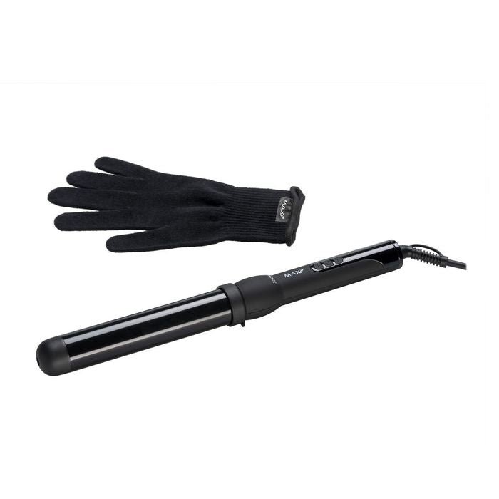 Het hittebestendige rubberen handvat biedt comfort en veiligheid tijdens het stylen, terwijl de tang dankzij het dual voltage systeem wereldwijd te gebruiken is. Voor extra veiligheid ontvang je een hittebestendige handschoen, zodat je je haar eenvoudig en zonder zorgen rond de staaf kunt wikkelen.