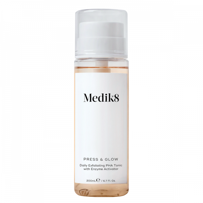 De Medik8 Press & Glow 200ml is een milde maar effectieve PHA toner die zorgt voor een heldere, gehydrateerde en egale huid. Geschikt voor dagelijks gebruik, zelfs voor de gevoelige huid.