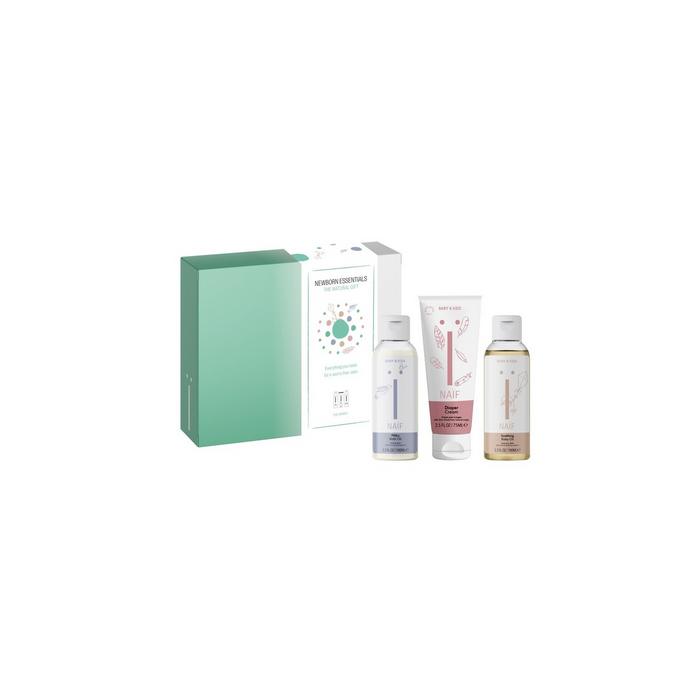 De Naïf Baby & Kids The Newborn Essentials is de ideale verzorgingsset voor een zorgeloze start met je baby. Deze set bevat 3 natuurlijke verzorgingsproducten die speciaal ontwikkeld zijn voor de gevoelige babyhuid: Milky Bath Oil 100ml, Diaper Cream 75ml en Soothing Baby Oil 100ml.