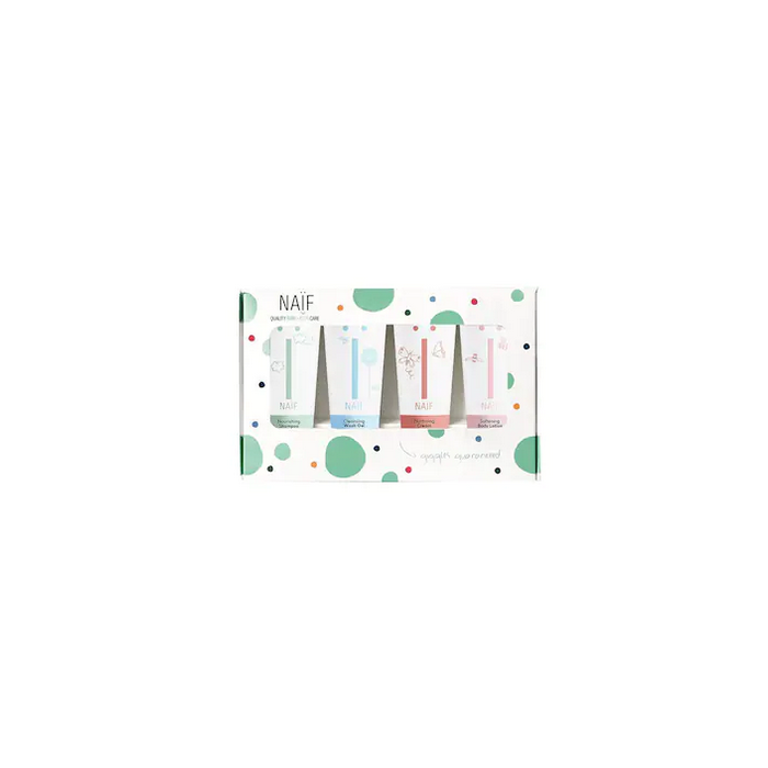 De Naïf Baby & Kids The Mini Set is een handige verzorgingsset in reisformaat, speciaal ontwikkeld voor de gevoelige huid van baby’s en kinderen. De set bevat 4 natuurlijke verzorgingsproducten, perfect om kennis te maken met Naïf of om mee te nemen op reis.