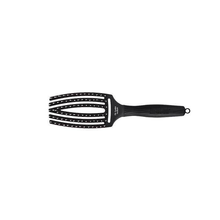 De Olivia Garden Fingerbrush Combo Zwart Medium is een professionele föhn- en ontklitborstel die het haar moeiteloos glad, glanzend en volumineus maakt. Dankzij de combinatie van antistatisch en geïoniseerd nylon- en 100% everzwijnhaar zorgt deze borstel voor ultieme glans, zachtheid en hydratatie bij elke borstelbeurt.