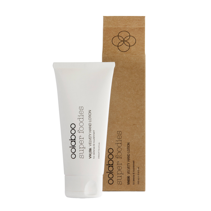 Oolaboo Super Foodies Velvety Hand Lotion 100ml is een voedende en beschermende handcrème die de huid intens verzorgt zonder vet aan te voelen. De formule zit boordevol antioxidanten en bevat hyaluronzuur, dat snel door de huid wordt opgenomen en langdurig hydrateert. Deze lotion is ideaal voor normale tot droge handen en helpt kleine beschadigingen te herstellen, terwijl ze de huid beschermt tegen vroegtijdige huidveroudering.