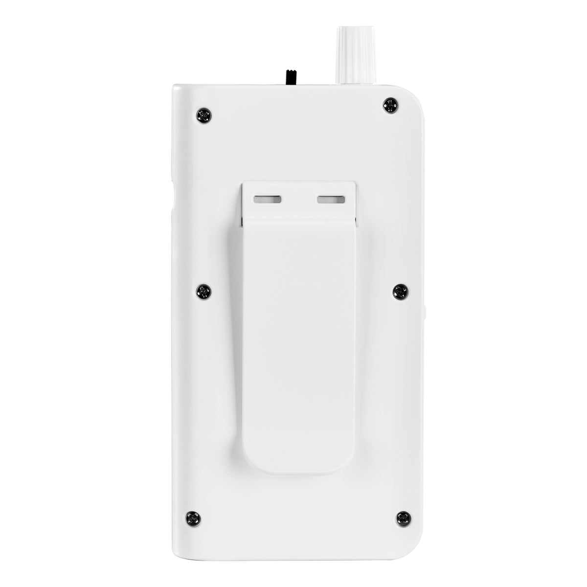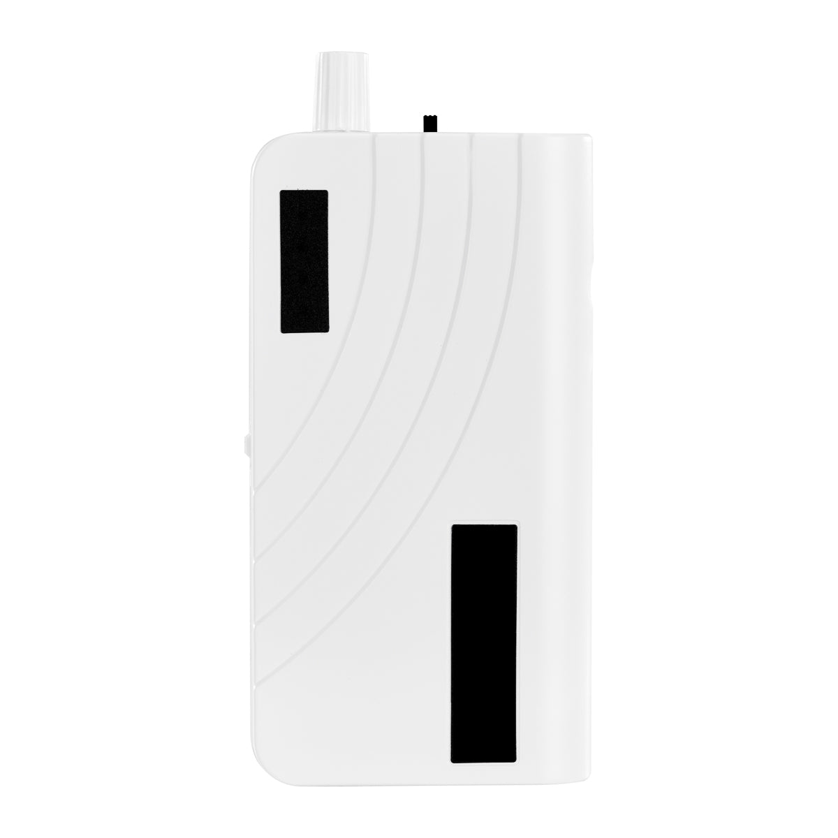 De VIVA V 201 is compact en heeft een minimalistische kunststof behuizing in wit-tinten, waardoor het apparaat eenvoudig schoon te houden is. Dankzij het lichte gewicht en het compacte formaat berg je het makkelijk op en neem je het moeiteloos mee naar afspraken. Aan de achterkant zit een clip waarmee je het apparaat handig aan je riem of andere plek kunt bevestigen — extra praktisch bij mobiele nagelbehandelingen.