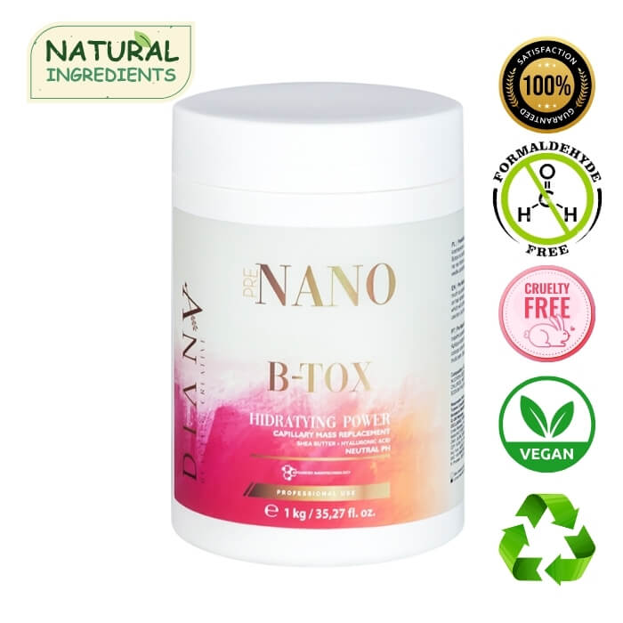 Ontdek PreNano HaarBotox, de revolutionaire veganistische haarfiller en reparateur die beschadigd, droog en breekbaar haar onmiddellijk herstelt en versterkt.