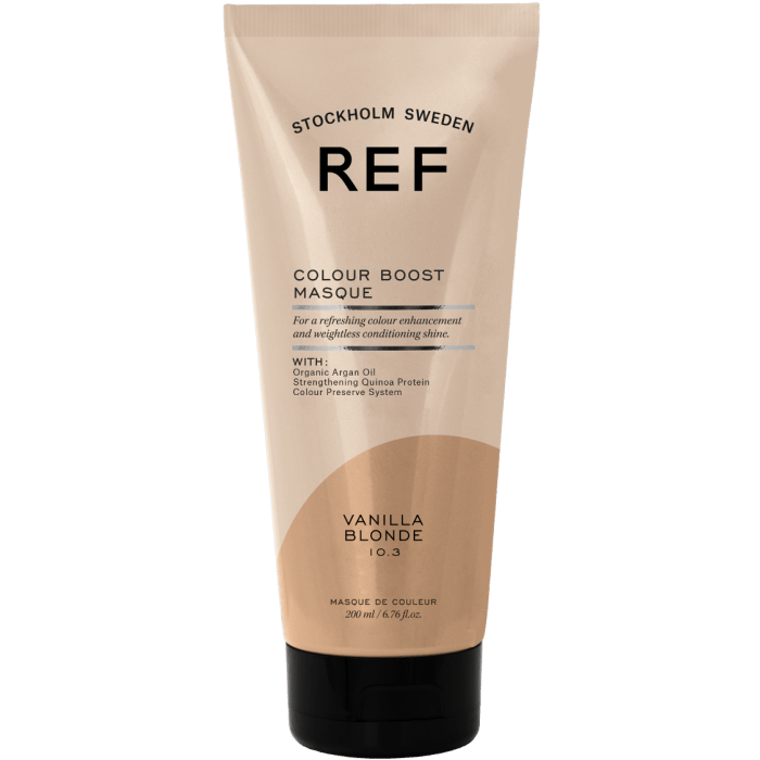 Het REF Colour Boost Masque 200ml is een diep verzorgend kleurmasker dat de haarkleur onmiddellijk opfrist met zachte, krachtige pigmenten die na 2 tot 5 wasbeurten geleidelijk vervagen. Ideaal voor gekleurd haar dat zijn intensiteit heeft verloren, of voor het opfrissen van een doffe tint. Het masker werkt snel, geeft direct zichtbaar resultaat en zorgt ervoor dat het haar er weer levendig, fris en stralend uitziet.